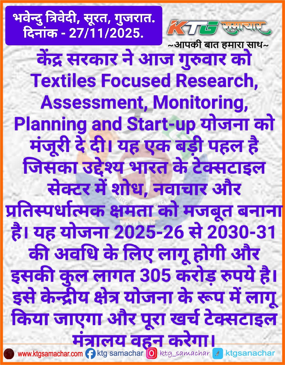 केंद्र ने 305 करोड रुपए की Tex-RAMPS योजना को di मंजूरी।