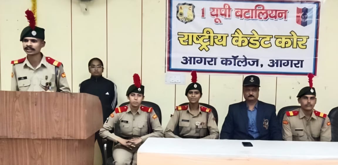 गुरूचार को संविधान दिवस के अवसर पर आज एनसीसी आर्मी विंग आगरा कॉलेज के कैडेट्स ने आगरा कॉलेज के सेमिनार हॉल में कार्यक्रम आयोजित किया, जिसमें एनसीसी अधिकारी कैप्टन अमित अग्रवाल ने कैडेट्स को सम्बोधित करते हुए कहा कि भारत का संविधान विश्व के महान संविधानों में से एक है, जो हमको हमारे अधिकारों एवं कर्तव्यों का बोध करता है। और हमें संविधान निर्माताओं का कृतज्ञ होना चाहिए कि उन्होंने एक ऐसा संविधान देश को दिया जो सभी को समानता और धार्मिक, सामाजिक व आर्थिक स्वतंत्रता का अधिकार देता है। हमें संविधान के मूल्यों की रक्षा करनी होगी। इस दौरान कैडेट्स ने संविधान में वर्णित कर्तव्यों का पालन करने की शपथ भी ली। कार्यक्रम में कैडेट प्रिया, शगुन, सना बानो, प्रवीण कुमार दीपेश कुमार, ऋषभ, अनुज पाराशर ने भी अपने विचार व्यक्त किए। इस अवसर पर एसयूओ लवकुश, यूओ मनोज जुरेल, यूओ यामिनी चाहर, सर्जेंट मेजर रोहित कर्दम, सार्जेंट अरुण, सार्जेंट प्रिया चाहर, हिमांशु, प्रतीक खंडेलवाल, विशाल रावत उपस्थित रहे। संचालन कैडेट प्राशी अग्रवाल ने तथा आभार एसयूओ तमन्ना परमार ने किया।