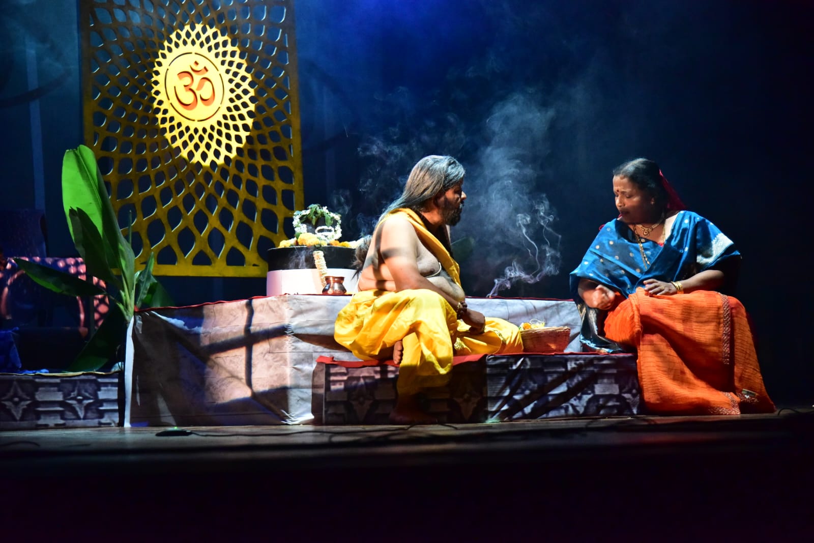 या नाटकात गणाचार्य धर्मानंद यांची भूमिका(डॉ. जगन्नाथ (नाथा) चितळे) यांनी केली तर गांधारी देवी यांची निलिमा चितळे यांनी केली. सुनबाई च्या भूमिकेत (शुभांगी वाणी) तर योगिनी च्या भूमिकेत( डॉ.भारती मढवई) होत्या. कर्मानंद म्हणून(अक्षद चंद्रवंशी), ज्ञानानंद (अमोल काळे), राजा वीरकेतु ( सुनील कवठेकर ), अतिथी (श्रेयश यादव), स्वरूपानंद - (विवेक भोगले), साधक/पुरोहित (अधिराज जालनेकर (बालक), साधक ( प्रसन्न सोनटक्के), साधक (आयुष गावंडे ), साधक (आशिष पांचाळ), सेनापती (विक्रम इंगोले), सैनिक (श्रीकांत पंडित ), सैनिक (रोहित जोंधळे ), सैनिक (आकाश पांचळ ) , सैनिक (अनिकेत इंगळे), सैनिक (ऋतिक पुंडे ), यवन युवक (नागेश लोकडे ) यांनी भूमिका पार पाडली.