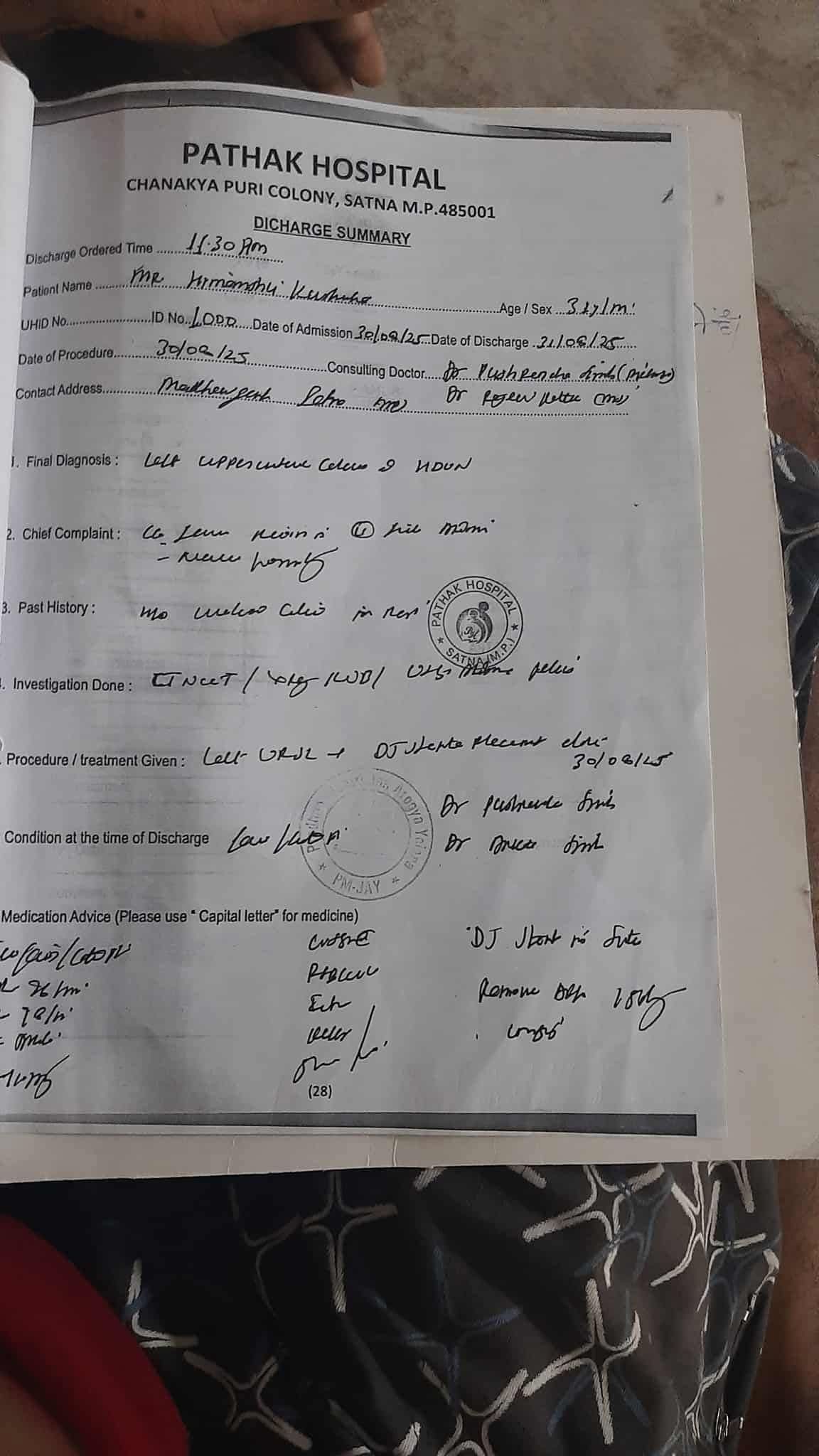 सतना स्थित पाठक हॉस्पिटल में आयुष्मान योजन से इलाज करा रहीं मरीज हिमांशी कुशवाहा एवं परिजनों ने मामले की शिकायत की है उनका कहना है कि आठ हजार रुपए अधिक लिए गए हैं। CMHO का कहना है कि तीन दिन में जवाब दें अन्यथा कार्यवाही के लिए तैयार रहें।