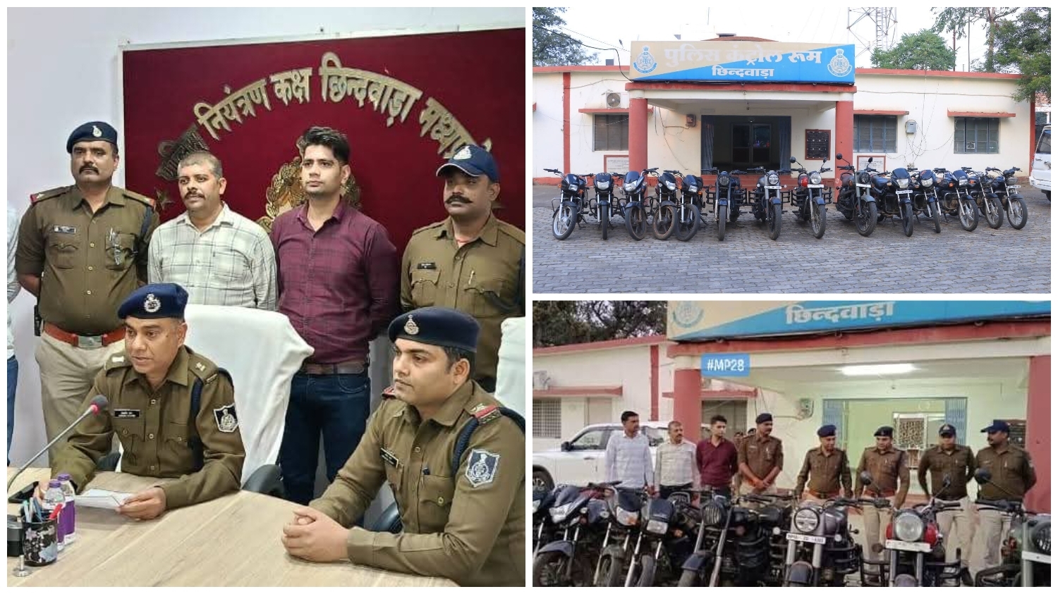 छिंदवाड़ा:-कुंडीपुरा पुलिस ने चोरी गई 20 बाइक को जप्त किया है और जीजा साले सहित दो आरोपियों को गिरफ्तार करने में बड़ी सफलता मिली है कंट्रोल रूम में प्रेसवार्ता कर एडिशनल एसपी ने मामले का खुलासा किया है पुलिस की पूछताछ में सामने आया कि रील बनाने की शौक मे आरोपी बाइक चोरी की वारदात को अंजाम देते थे और सोशल मीडिया में अलग-अलग बाइक की रील बनाकर सोशल मीडिया में डाला किया करते थे पुलिस ने मामले का खुलासा करते हुए बताया कि बाइक चोरी की घटना के मामले मे जांच पड़ताल की गई तो एक आरोपी का नाम सामने आया तो पुलिस ने पूछताछ की तो सामने आया कि जीजा और साला मिलकर चोरी की वारदात को देते हैं पुलिस ने उनके पास से 20 बाइक जप्त की है और दो युवक को भी गिरफ्तार किया गया है जिसमें तीन बुलेट शामिल है पुलिस की जांच पड़ताल जारी है और जो भी तत्व सामने आएंगे उसके आधार पर और कार्रवाई