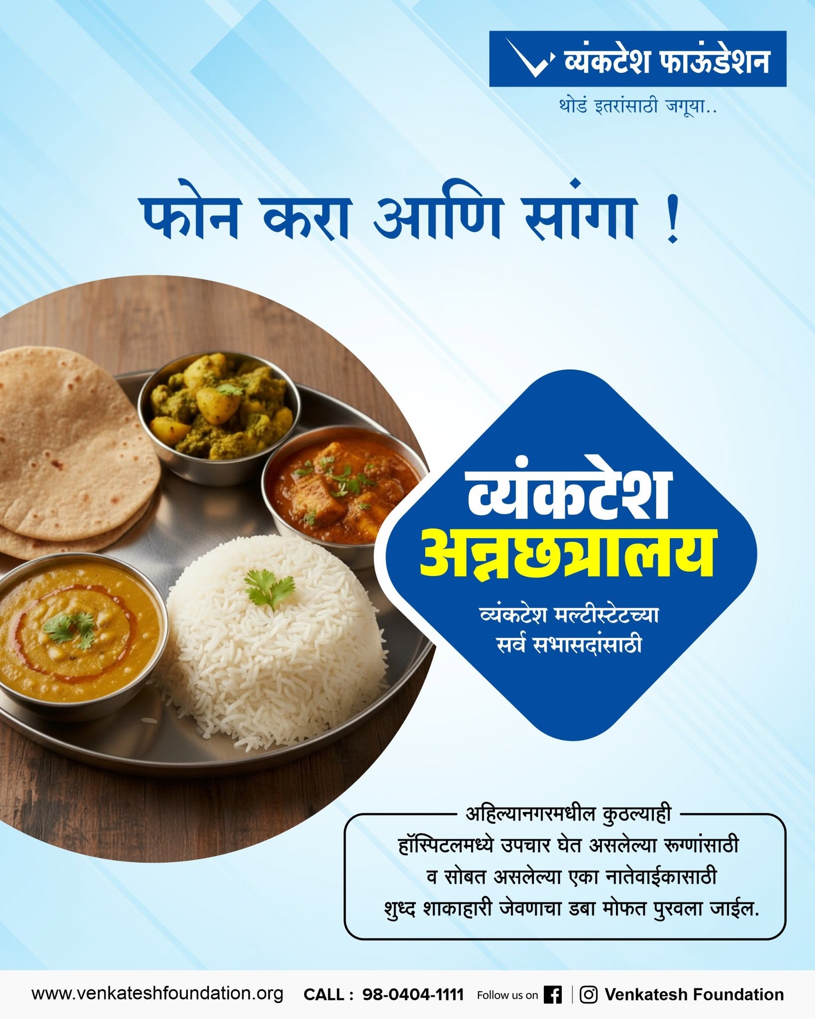 अहिल्यानगर येते कोणत्या ही हॉस्पीटल मध्ये उपचार घेत असलेल्या लोकांना छ्या एक नातलगास मोफत अन्न मिळेल एक फोन करून