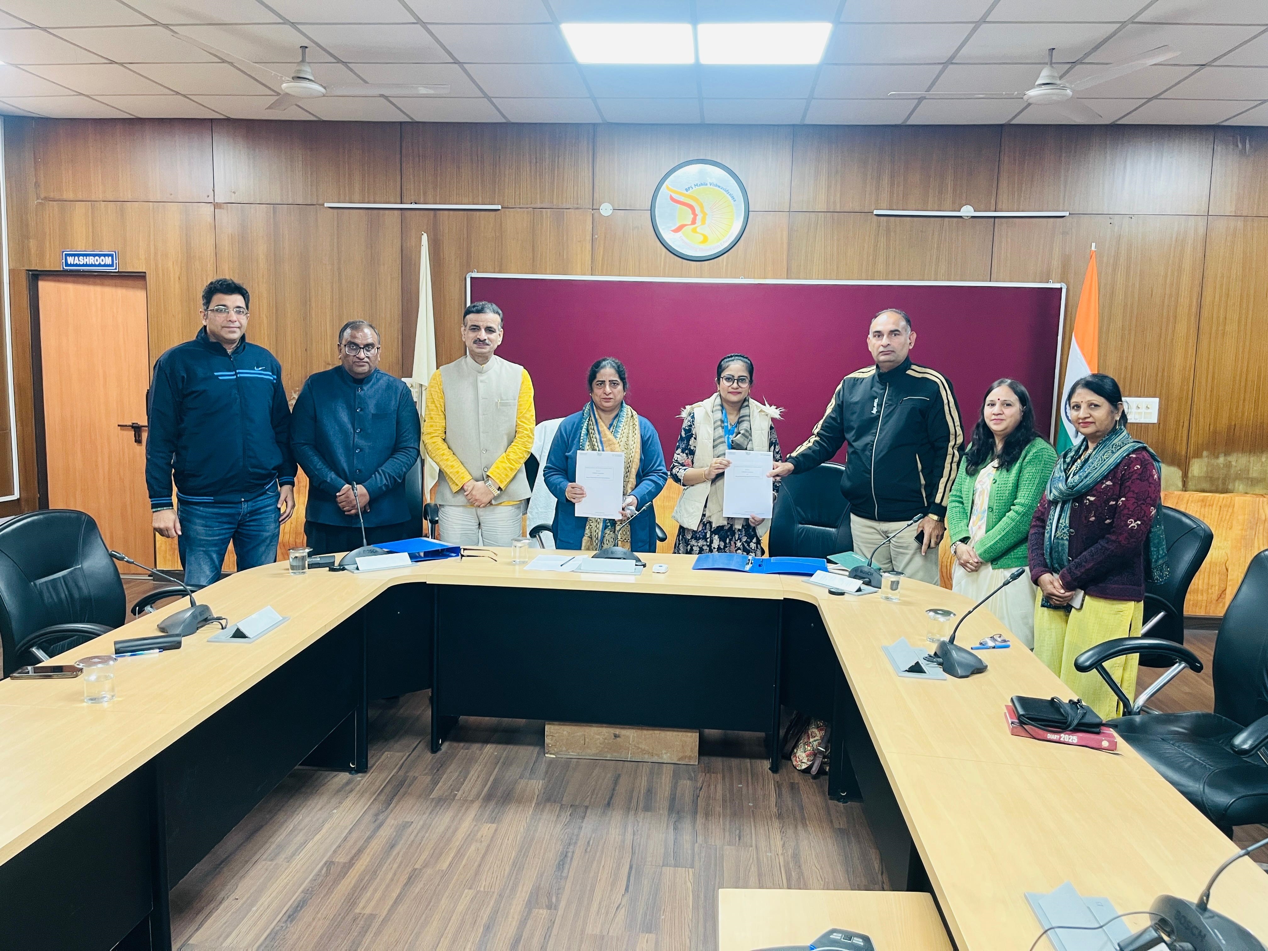फोटो कैप्शन:- एमओयू पर हस्ताक्षर करते कुलपति प्रो सुदेश व मिस उजमा अरूज तथा अन्य