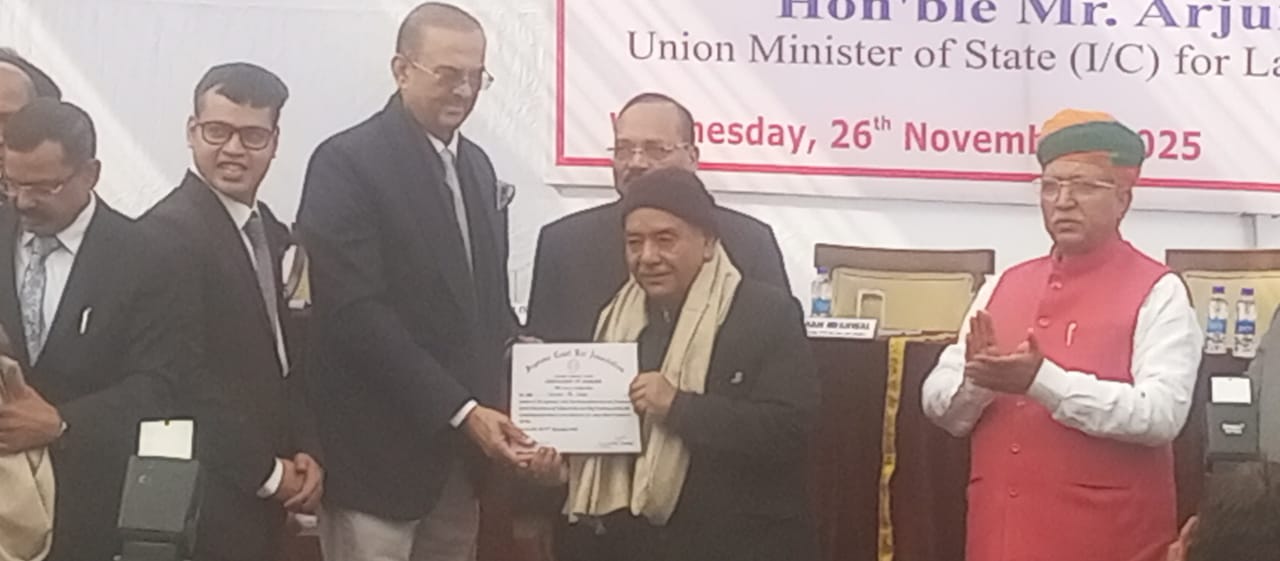 Supreme Court Bar Association (SCBA) ORGANISED " LAW DAY" function at Supreme Court Lawns on 26.11.25 honoring advocat Shri K.P.Singh ji by the Chief Justice of India, Justice Surya kant, Union Law & Justice Minister Sri Arjun Singh Sri Rahul kaushik VICE PRESIDENT of SCBA, & Solicitor General of India Tusar Kant ji .