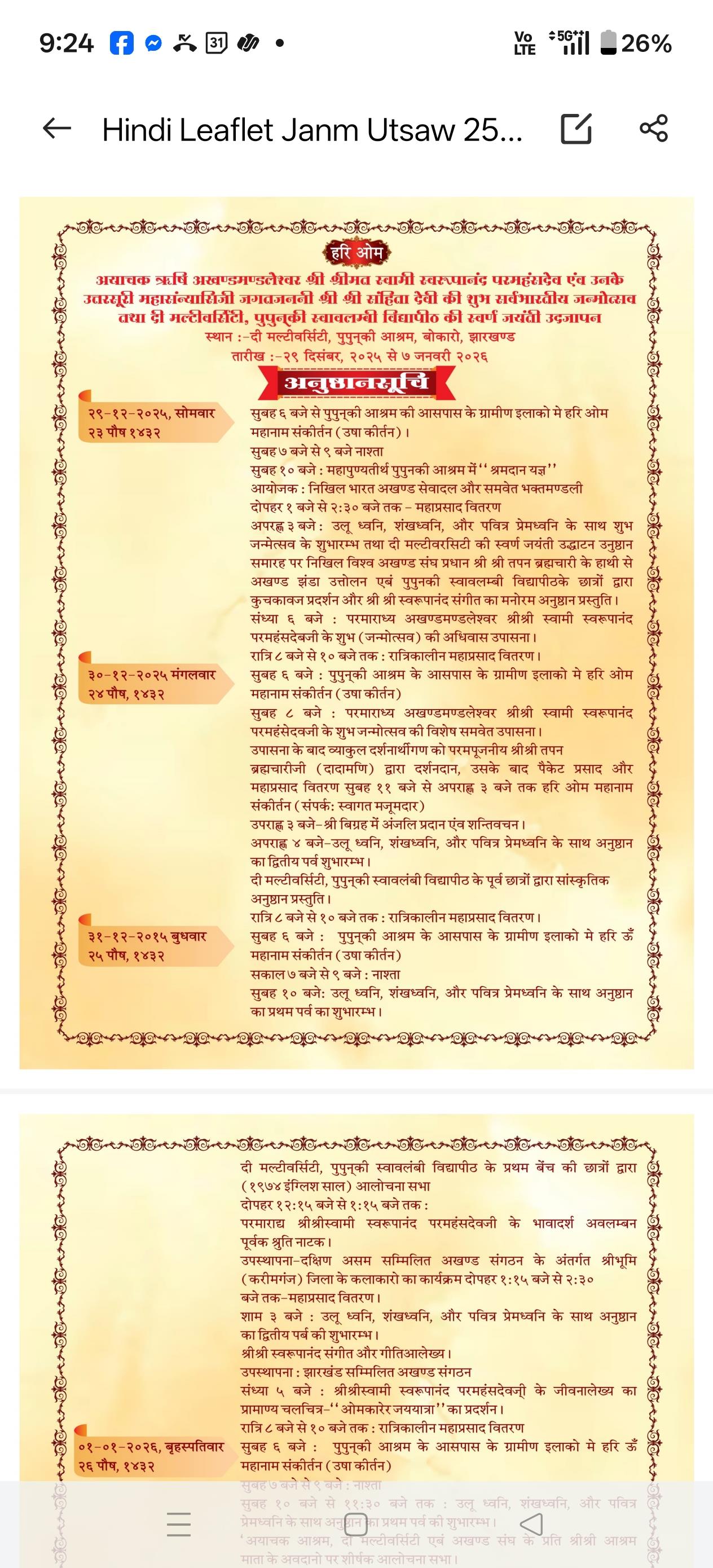 অখণ্ডদের পবিত্র তীর্থ ও শ্রীশ্রী স্বামী স্বরূপানন্দ পরমহংস দেবের তপ-ভূমি কর্ম-ভূমি পুপুনকী আশ্রম আধ্যাত্বিক মহিমায় পুণ উদ্ভাসিত হয়ে উঠছে আগামী সর্বভারতীয় জন্মোৎসব ও স্বাবলম্বী বিদ্যাপীঠের স্বর্ণ জয়ন্তী( 1974-2025) উৎযাপন উপলক্ষে।