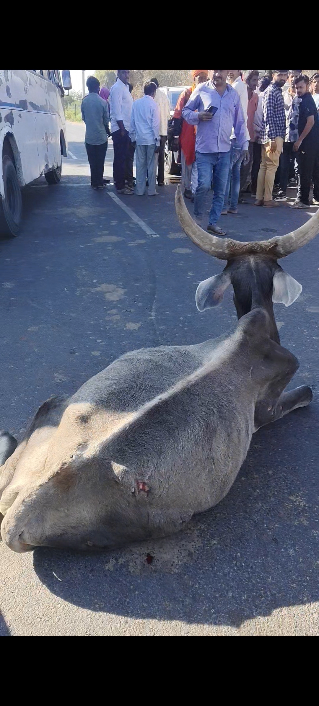 तेज रफ्तार कार ने मारी नंदी को टक्कर मांडवला बस स्टैण्ड पर