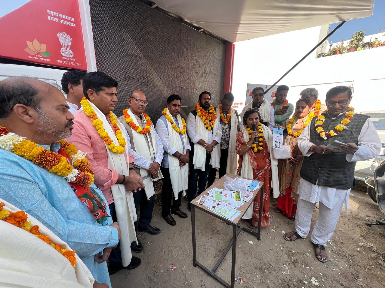 रवि शंकर शर्मा सेवानिवृत्त व्याख्याता एवं सक्रिय कार्यकर्ता भाजपा , दिलीप जैन सहित अनेक गणमान्य व्यक्तियों द्वारा संबोधन किया गया। इस दौरान भजनलाल शर्मा मुख्यमंत्री महोदय द्वारा किए गए कार्यों पर विस्तृत जानकारी दी गई साथ ही उनके द्वारा किए गए विकास कार्य के ऊपर भी प्रकाश डाला गया। जिसकी जनता ने सहराना कीऔर जनता द्वारा भारत माता की जय, वंदे मातरम, भाजपा जिंदाबाद ,मुख्य मंत्री जिन्दाबाद के नारे लगाए। कार्यकर्ताओं में बहुत ही जोश था।