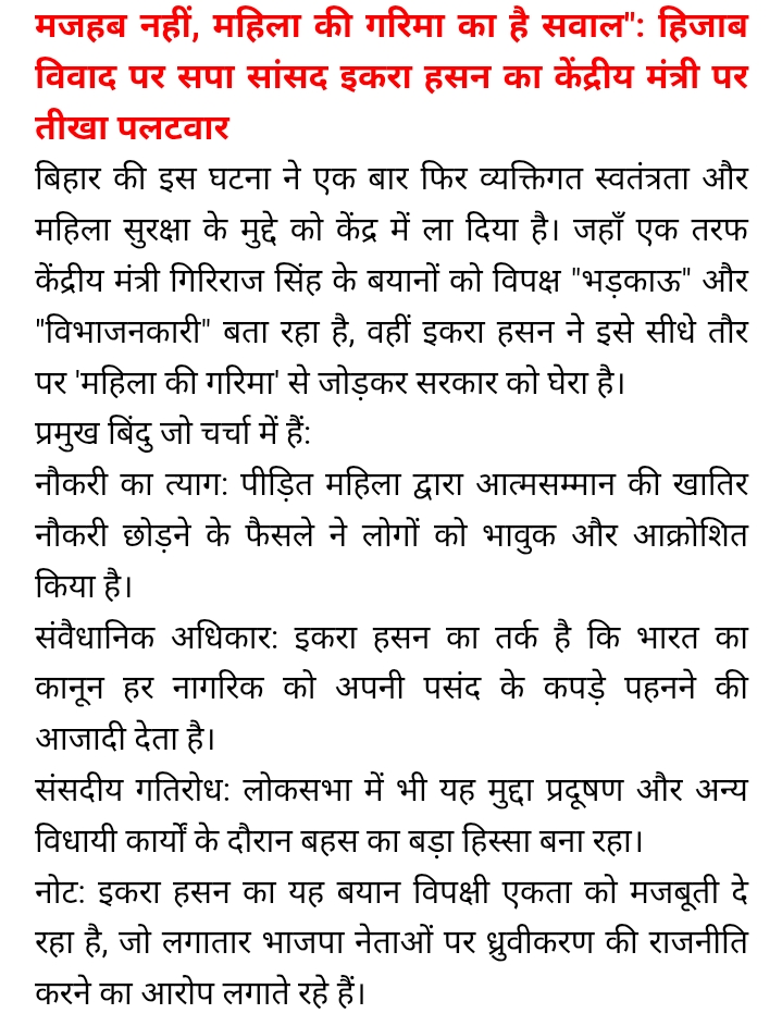 समाजवादी पार्टी सांसद इकरा हसन