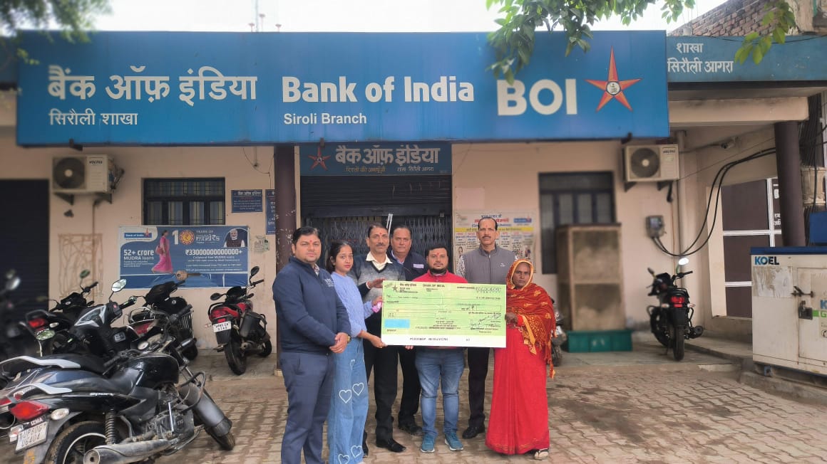सड़क दुर्घटना में प्रकाश कुमार, निवासी कंचनपुर, धनौली (आगरा) की असामयिक मृत्यु के बाद बैंक ऑफ इंडिया की सिरौली शाखा ने मानवीय संवेदना का परिचय देते हुए मृतक ग्राहक के परिजनों को ₹10 लाख की आर्थिक सहायता राशि प्रदान की। उल्लेखनीय है कि मृतक के नाम पर किसी प्रकार का बीमा कवर नहीं था, इसके बावजूद बैंक द्वारा यह सहायता उपलब्ध कराई गई।
