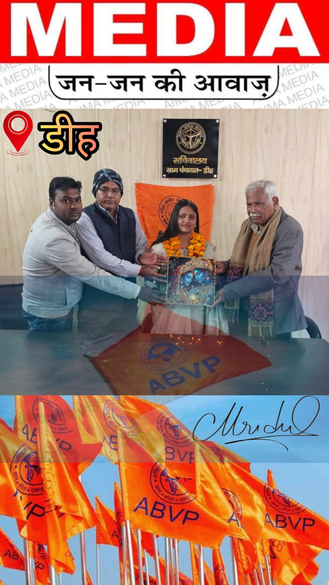 AIMA मीडिया न्यूज़:- अखिल भारतीय विद्यार्थी परिषद नगर इकाई कस्बा डीह के अंतर्गत सरिता रावत के आगमन पर विद्यार्थी परिषद के कार्यकर्ताओं द्वारा भव्य स्वागत किया गया। इस अवसर पर नगर अध्यक्ष अमित सिंह, नगर उपाध्यक्ष रोहित मौर्य, नगर मंत्री हेरम्ब शुक्ला सहित प्रधान संघ के अध्यक्ष फूलचंद्र अग्रहरि प्रमुख रूप से उपस्थित रहे।