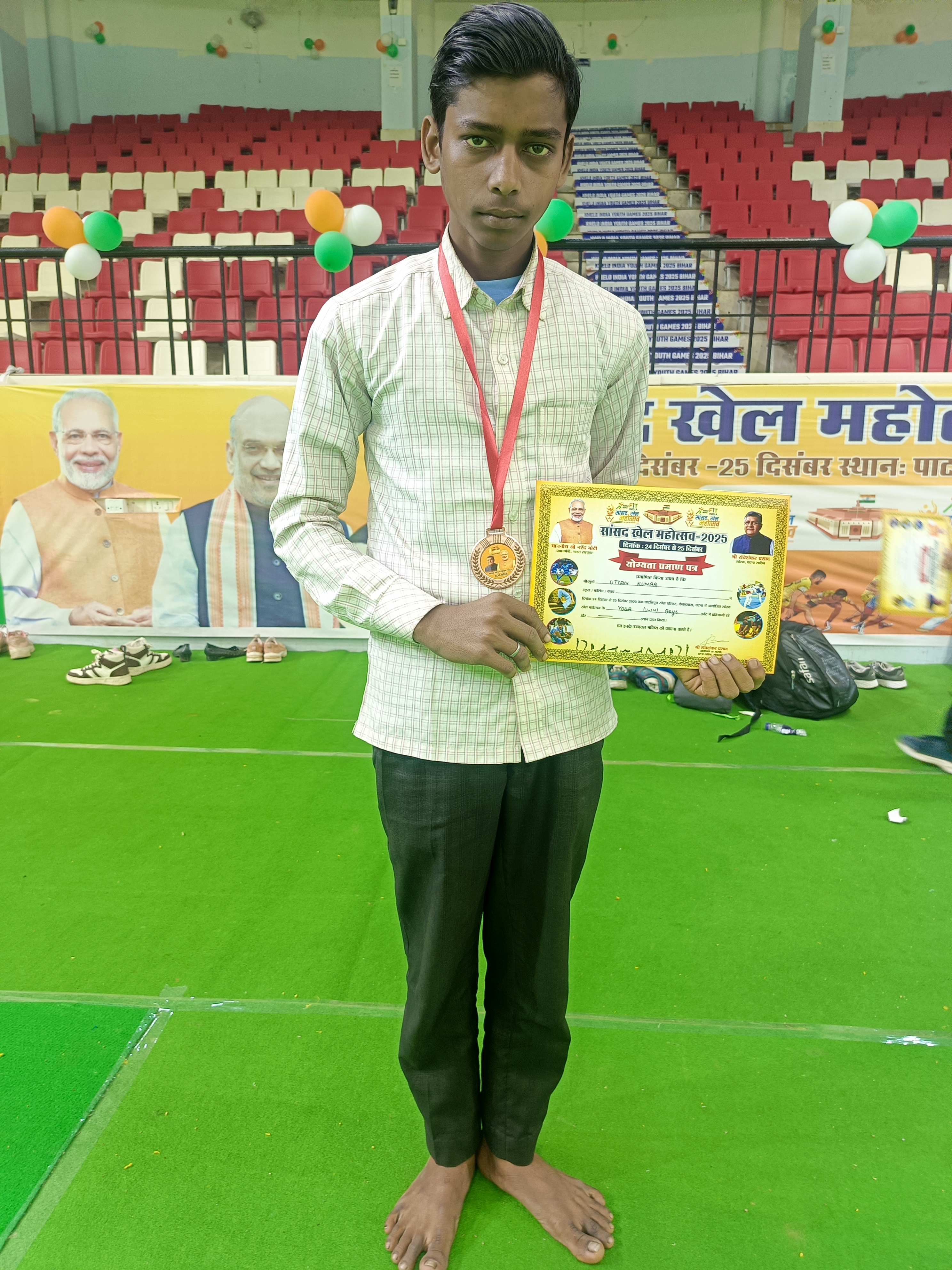 सांसद खेल महोत्सव 24 और 25 दिसंबर 2025 योग प्रतियोगिता में मध्य विद्यालय खवासपुर , पीरपैंती , जिला भागलपुर के उत्तम कुमार और गौतम कुमार को गोल्ड मेडल और सर्टिफिकेट दिया गया इन दोनों के कोच योग प्रशिक्षक अबधेश कुमार लेकर पटना गए थे इन्होंने बच्चों को बहुत अच्छे से प्रशिक्षण दिया जिसका परिणाम दोनों बच्चों के हाथ में है।