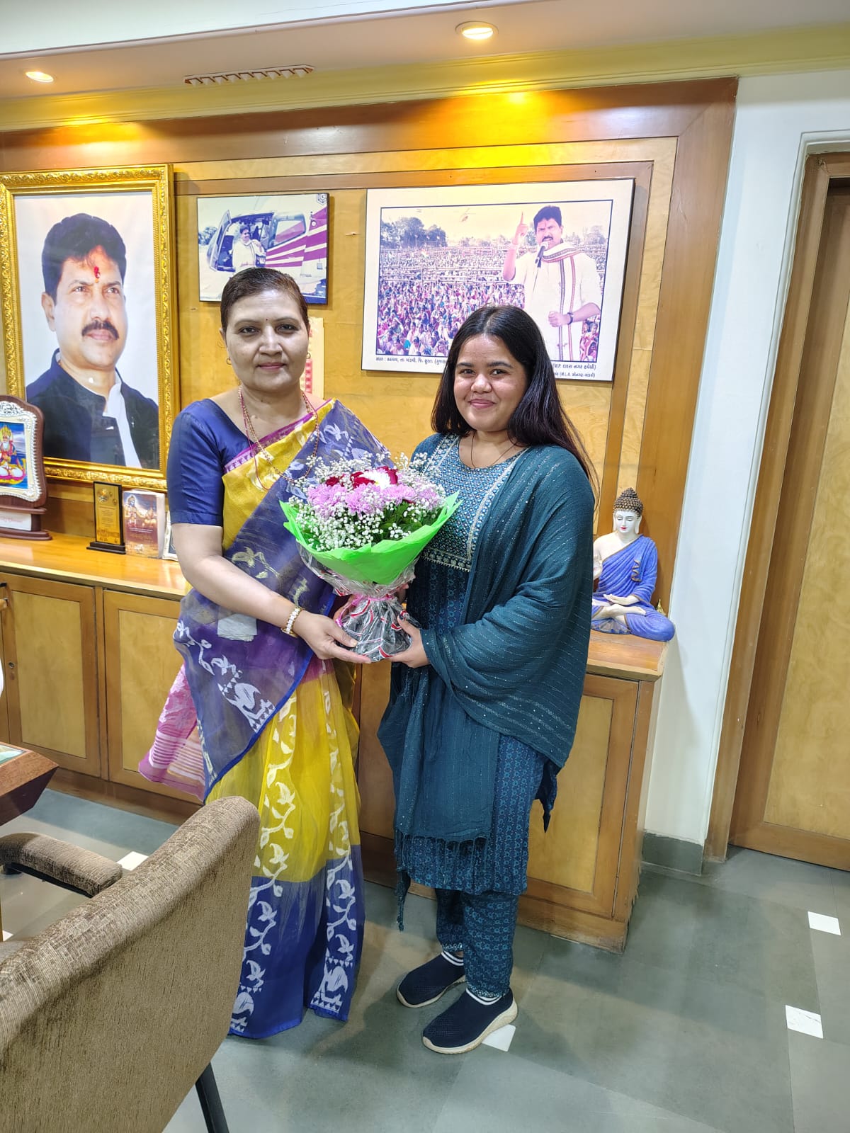 इन दोनों बेटियों की यह उपलब्धि पूरे प्रदेश के लिए गर्व का विषय है। अपनी सफलता के उपरांत दोनों ने माननीय सांसद श्रीमती कलाबेन मोहनभाई डेलकर जी से शिष्टाचार भेंट कर उनका आशीर्वाद प्राप्त किया।