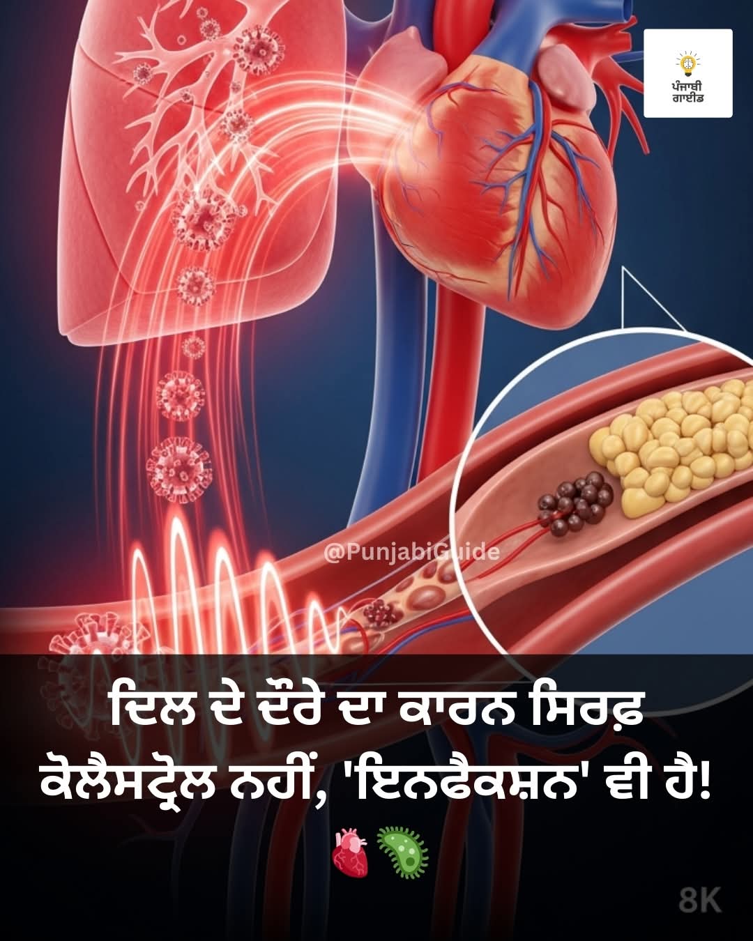 ਨਵੀਆਂ ਖੋਜਾਂ ਨੇ ਸਾਬਤ ਕੀਤਾ ਹੈ ਕਿ ਦਿਲ ਦੇ ਦੌਰੇ (Heart attacks) ਹਮੇਸ਼ਾ ਸਿਰਫ਼ ਕੋਲੈਸਟ੍ਰੋਲ ਵਧਣ ਨਾਲ ਨਹੀਂ ਹੁੰਦੇ। ਗੰਭੀਰ ਇਨਫੈਕਸ਼ਨ (ਜਿਵੇਂ ਫਲੂ ਜਾਂ ਨਿਮੋਨੀਆ) ਵੀ ਇਸਦਾ ਇੱਕ ਵੱਡਾ ਕਾਰਨ ਬਣ ਸਕਦੇ ਹਨ।