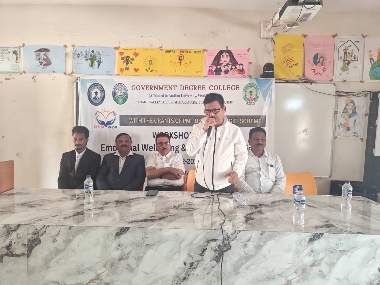 ప్రస్తుత సమాజంలో ఒత్తిడిని అధిగమిస్తేనే విజయం సాధించగలుగుతామని అరకులోయ ప్రభుత్వ డిగ్రీ కళాశాల ప్రిన్సిపాల్ డా కేబీకే నాయక్ అన్నారు. మంగళవారం కళాశాలలో డిగ్రీ విద్యార్ధుల కమ్యునికేషన్ నైపుణ్యాలను పెంపొందించేందుకు నిర్వహించిన పిఎం ఉష కార్యక్రమాన్ని ఉద్దేశించి ఆయన మాట్లాడారు. ఈ కార్యక్రమంలో విద్యార్ధులకు భావోద్వేగ శ్రేయస్సు, స్వీయ సంరక్షణ పద్దతులపై రీసోర్స్ పర్సన్ పీ లక్ష్మణ్ అవగాహణ కల్పించారు.