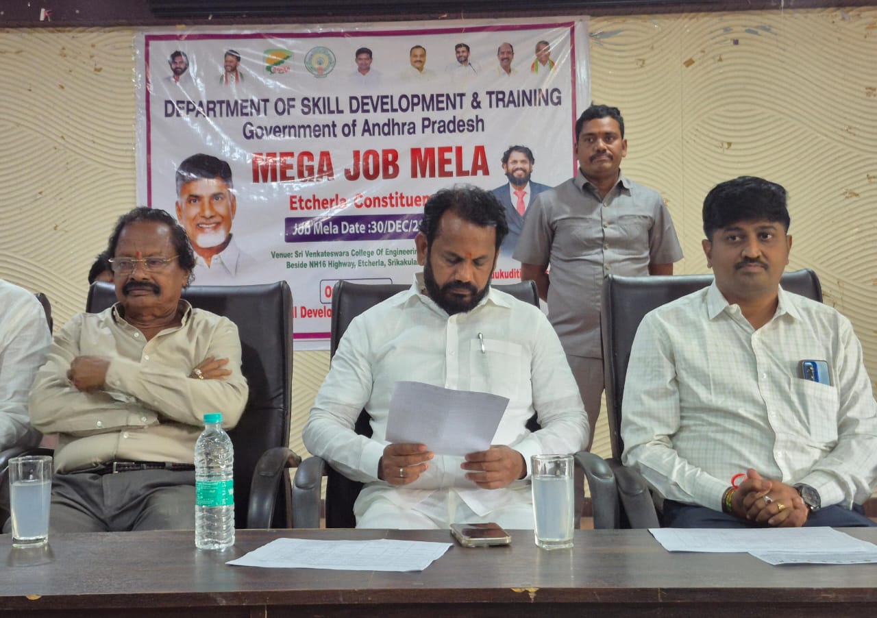 ఎచ్చెర్లలో మెగా జాబ్ మేళాకు విశేష స్పందన 311 మందికి నియామక పత్రాలు అందజేసిన ఎమ్మెల్యే ఈశ్వరరావు