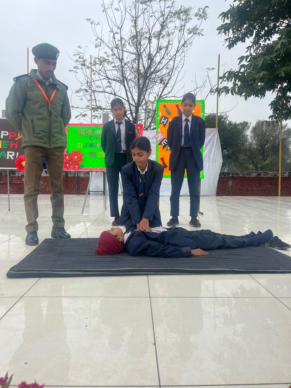 कैंप के दूसरे दिन का प्रशिक्षण विशेष रूप से क़दम ताल (मार्च पास्ट) और प्राथमिक चिकित्सा पर केंद्रित रहा। विद्यार्थियों को अनुशासन, तालमेल और आपातकालीन परिस्थितियों में प्राथमिक उपचार की आवश्यक जानकारी व्यवहारिक रूप से दी गई। अभ्यास सत्रों के दौरान बच्चों में उत्साह, अनुशासन और सीखने की लगन स्पष्ट रूप से देखने को मिली।