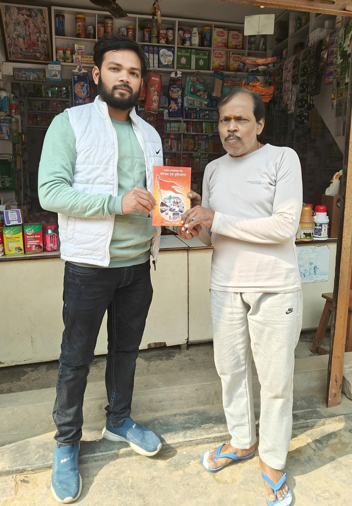 राष्ट्रीय स्वयं सेवक के शताब्दी वर्ष पर कार्यकर्ताओं ने बांटे किताब।