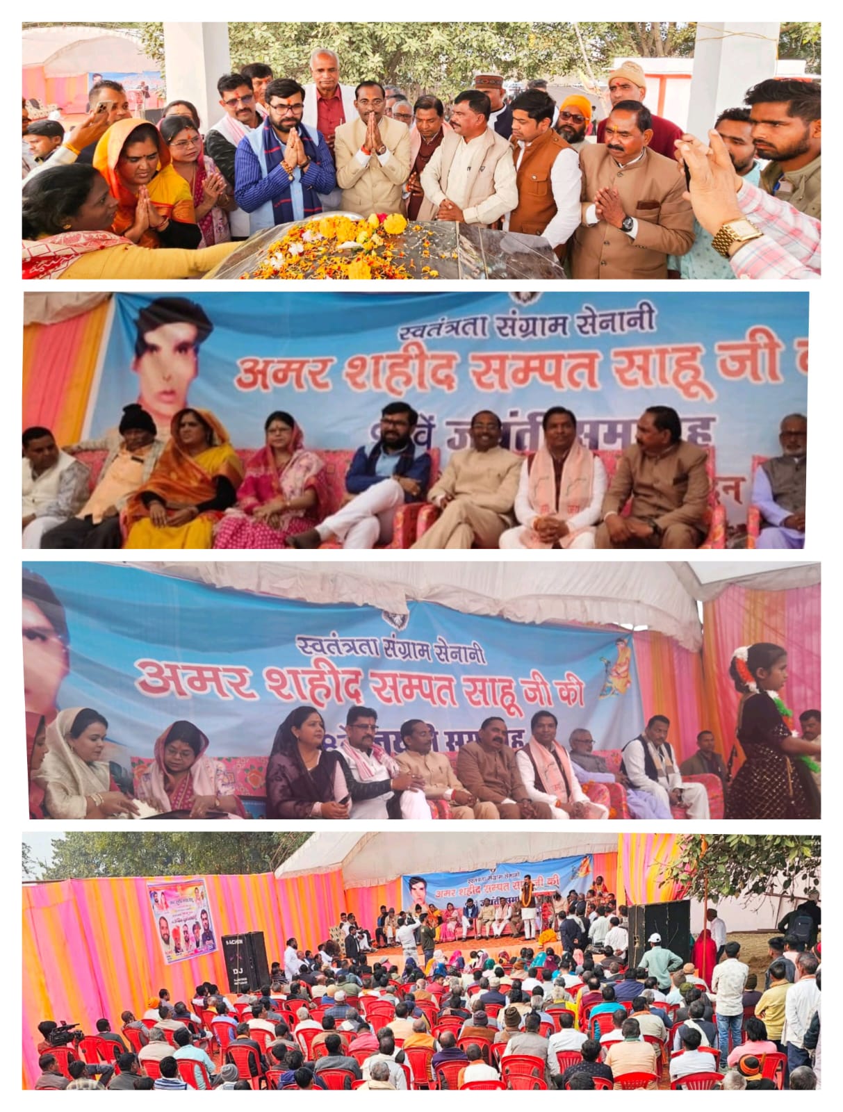 02 जनवरी 2026 को देश के अमर शहीद साहू समाज गौरव रत्न वीर संपत साहू जी की जयंती मैहर मध्यप्रदेश में पूरे सम्मान, गरिमा और भव्यता के साथ संपन्न हुई। शहीद संपत साहू जी के स्मारक स्थल पर आयोजित इस ऐतिहासिक कार्यक्रम में समाज के सभी वर्गों की उल्लेखनीय सहभागिता देखने को मिली। आयोजन साहू समाज जिला अध्यक्ष विजय मोदी के नेतृत्व में सफलतापूर्वक संपन्न हुआ।कार्यक्रम में छिंदवाड़ा सांसद श्री विवेक बंटी साहू, पूर्व तेलघानी बोर्ड अध्यक्ष एवं पूर्व कैबिनेट मंत्री दर्जा प्राप्त समाजसेवी श्री रवीकरण साहू, सिंगरौली विधायक श्री रामनिवास शाह, मैहर विधायक श्रीकांत चतुर्वेदी, पूर्व महापौर श्रीमती रेनू शाह तथा विशेष रूप से उपस्थित रहे। अतिथियों ने शहीद संपत साहू जी के त्याग,बलिदान और राष्ट्रसेवा को नमन करते हुए उनके विचारों को समाज के लिए प्रेरणास्रोत बताया।जयंती के अवसर पर मैहर नगर में भव्य बाइक–कार रैली निकाली गई, जो नगर के प्रमुख मार्गों से गुजरते हुए स्मारक स्थल तक पहुँची।रैली के माध्यम से शहीद संपत साहू जी के बलिदान को स्मरण करते हुए सामाजिक एकता और राष्ट्रभक्ति का संदेश दिया गया।इस अवसर पर जिला अध्यक्ष श्री विजय मोदी ने कहा कि,“शहीद संपत साहू जी का बलिदान समाज को एकजुट होकर आगे बढ़ने की प्रेरणा देता है।आज ओबीसी, एससी, एसटी, अल्पसंख्यक सहित सभी जाति-वर्गों की सहभागिता यह सिद्ध करती है कि समाज एकता के सूत्र में बंधा हुआ है।”उन्होंने कार्यक्रम को सफल बनाने के लिए सभी अतिथियों, समाजबंधुओं, युवाओं एवं नगरवासियों का आभार व्यक्त किया। कार्यक्रम में जबलपुर से अखिल भारतीय तेली महासभा (मध्यप्रदेश) के अध्यक्ष श्री राधेश्याम ऑस्तोलिया,रीवा से अखिल भारतीय तेली महासभा के अध्यक्ष श्री अरुण साहू,तेली पिछड़ा वैश्य मध्यप्रदेश के अध्यक्ष श्री हरिशंकर साहू (हटा), पूर्व कांग्रेस प्रत्याशी कमलेश साहू श्री हरिशंकर साहू, लक्ष्मण साहू (रीवा), परमानंद साहु, रमेश कुमार साहू (कटनी), विनोद साहू (कटनी), देवदत्त सोनी, ओम साहू (घुनवारा), कौशल साहू (बेरमा) सहित बड़ी संख्या में गणमान्य नागरिक, समाजजन एवं युवा उपस्थित रहे।आयोजन समिति के अनुसार इस वर्ष की जयंती ऐतिहासिक रही, जिसमें अभूतपूर्व जनसहभागिता देखने को मिली और मैहर नगर में सामाजिक समरसता एवं एकता का मजबूत संदेश गया।