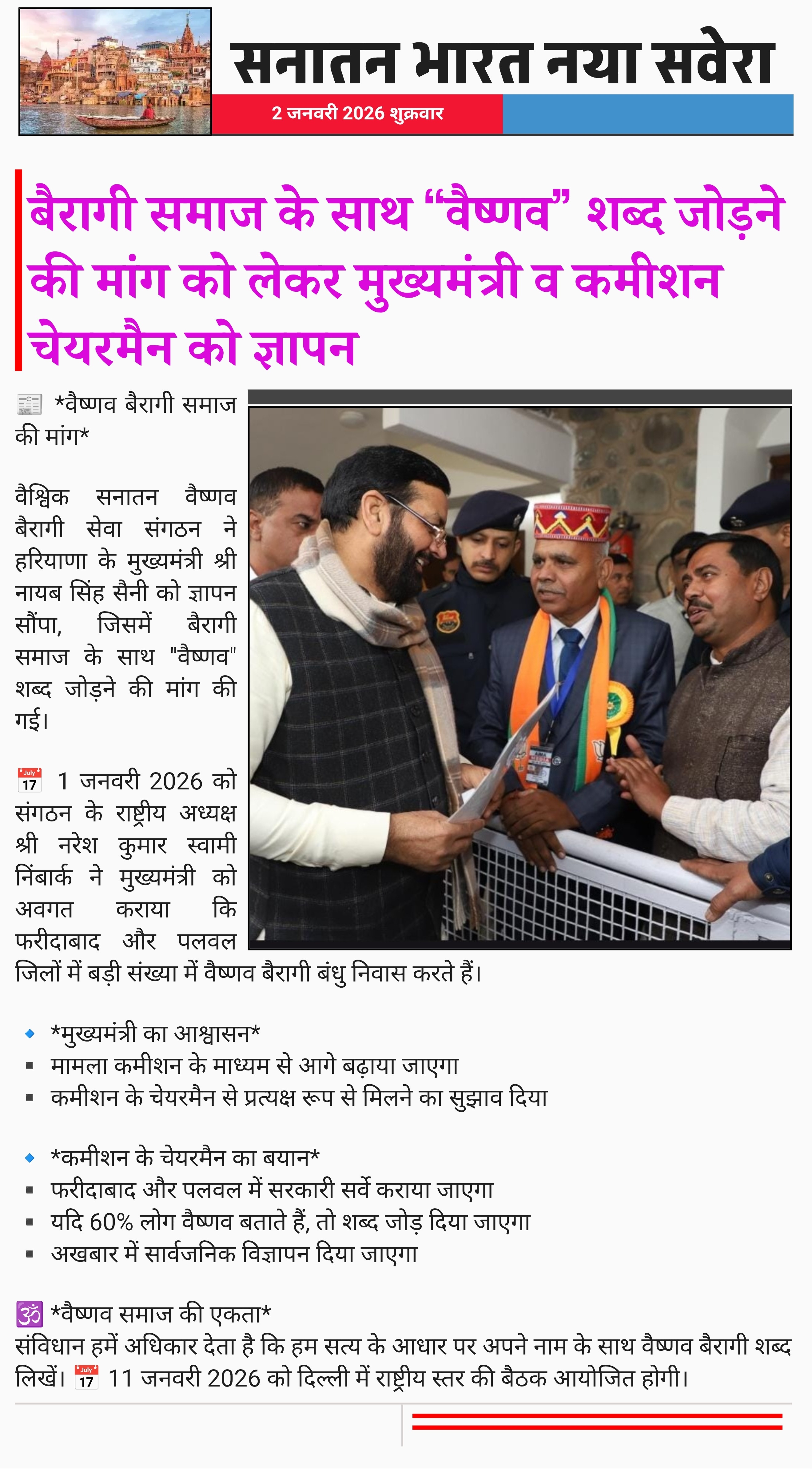 परसों वे हरियाणा के मुख्यमंत्री नायब सैनी जी से मिले। अपनी पुस्तक भेंट की और कई काम भी ओढा दिए। बैरागियों की हरियाणा में जबरदस्त पकड़ है।