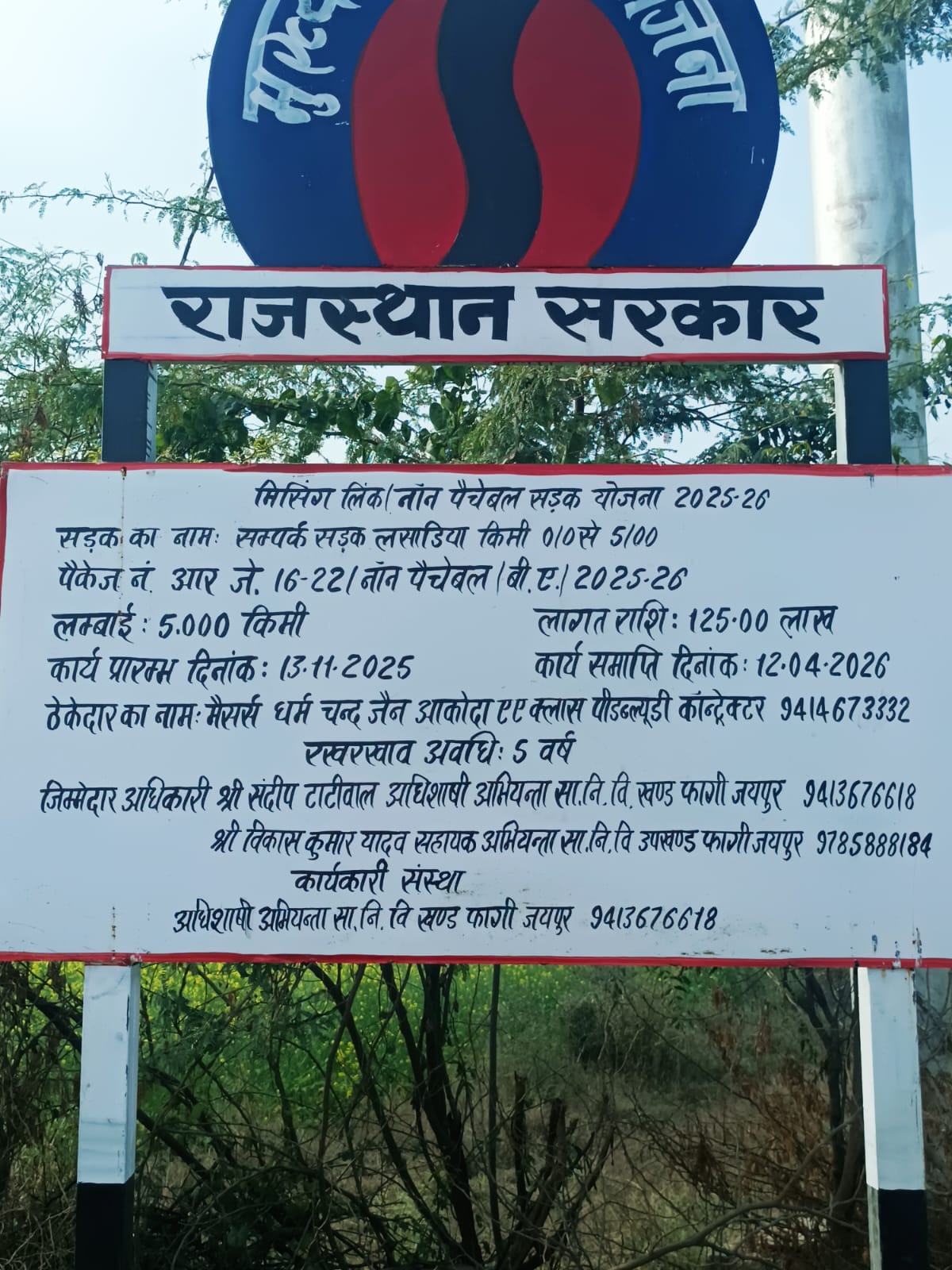ग्राम पंचायत लसाड़िया में 5 किलोमीटर की रोड केवल 1 महीने में ही टूट गई। ग्रामीणों का आरोप है कि यह रोड ज्यादा दिन टिकने वाली नहीं हैI मिली भगत होने के कारण ऐसे काम होते हैं इसकी जांच करवाई जाए