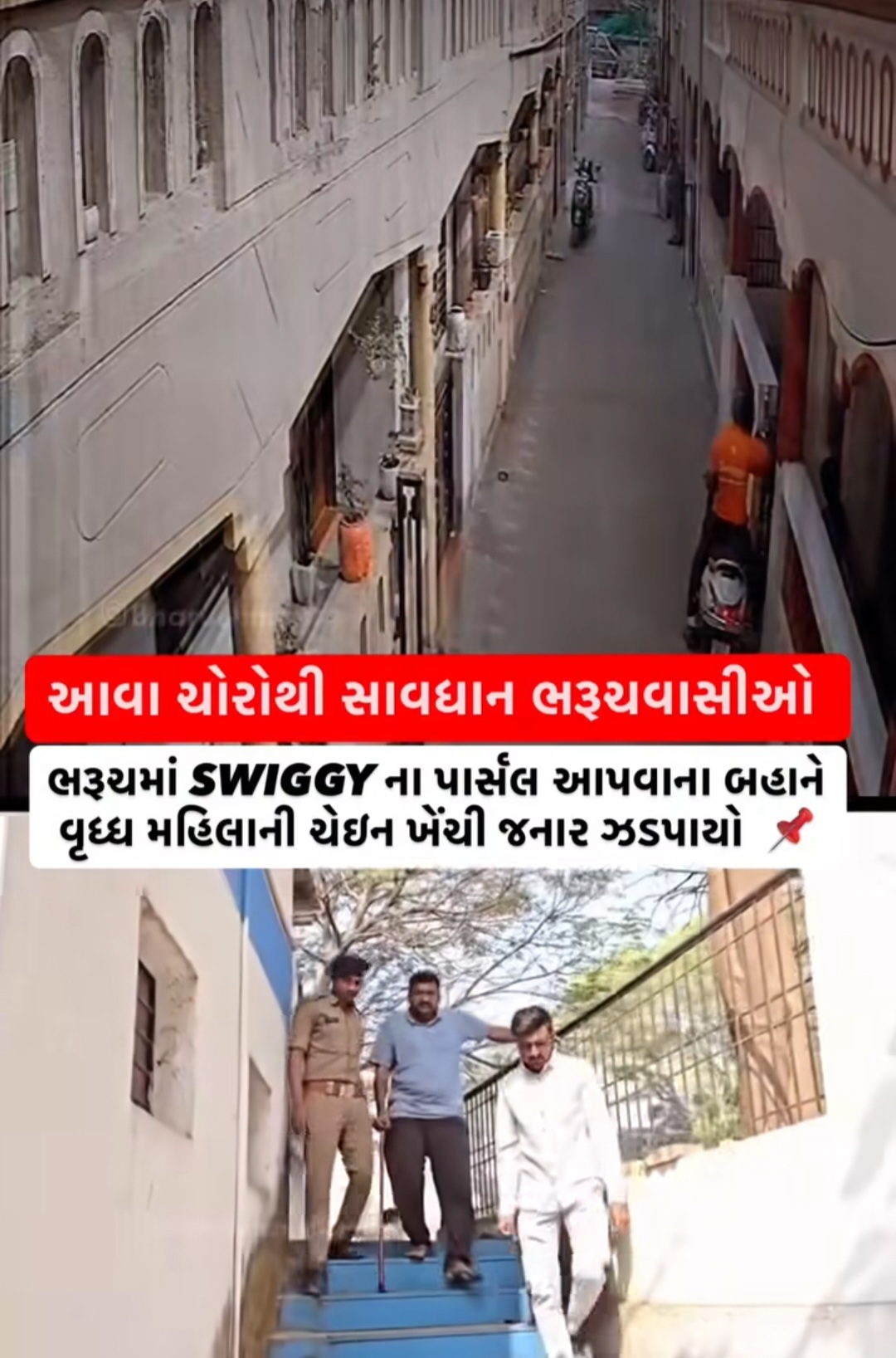 In Bharuch District beware of delivery boys because swiggy delivery boy snatched gold chain from a old woman.