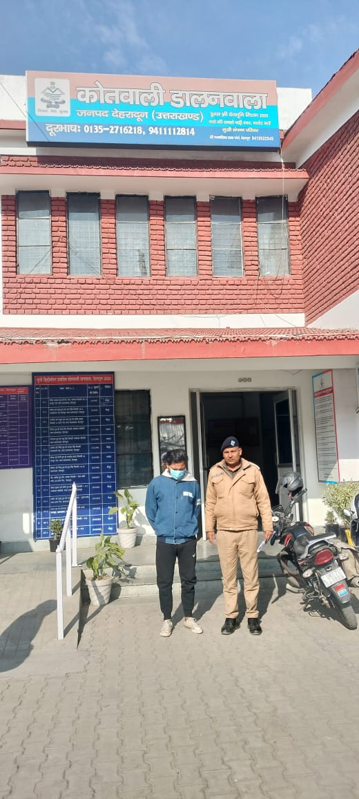 माननीय न्यायालय से प्राप्त गैर जमानती वारंटों की शत-प्रतिशत तामील हेतु श्रीमान वरिष्ठ पुलिस अधीक्षक जनपद देहरादून महोदय द्वारा निर्देशित किया गया है जिस क्रम में कोतवाली डालनवाला पुलिस टीम द्वारा आज दिनांक 05 जनवरी, 2026 को माननीय न्यायालय से चोरी के पुराने मामले में वांछित चल रहे एक नफर वारंटी अभियुक्त को उसके निवास से गिरफ्तार किया गया जिसे माननीय न्यायालय के समक्ष पेश किया जा रहा है।