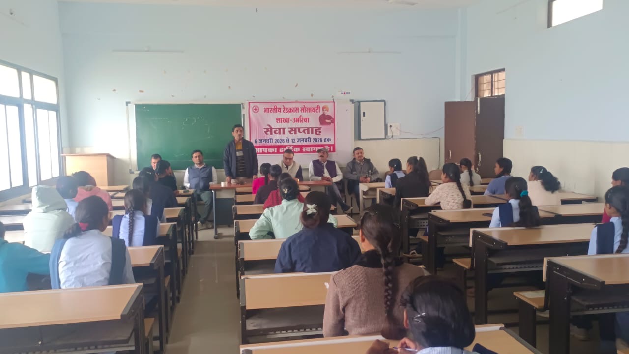 यह आयोजन भारतीय रेड क्रॉस सोसायटी मध्यप्रदेश राज्य शाखा, भोपाल के निर्देशानुसार तथा *रेड क्रॉस सोसायटी शाखा उमरिया के अध्यक्ष श्री धरणेन्द्र कुमार जैन जी (कलेक्टर उमरिया) के मार्गदर्शन में, सभापति श्री अखिलेश त्रिपाठी, प्रदेश प्रतिनिधि श्री मान सिंह एवं सचिव श्री राकेश शर्मा के नेतृत्व में संपन्न हुआ।* कार्यक्रम का मुख्य उद्देश्य युवाओं में स्वामी विवेकानंद जी के विचारों के माध्यम से सेवा, स्वास्थ्य, स्वच्छता एवं राष्ट्र निर्माण की भावना का विकास करना रहा।