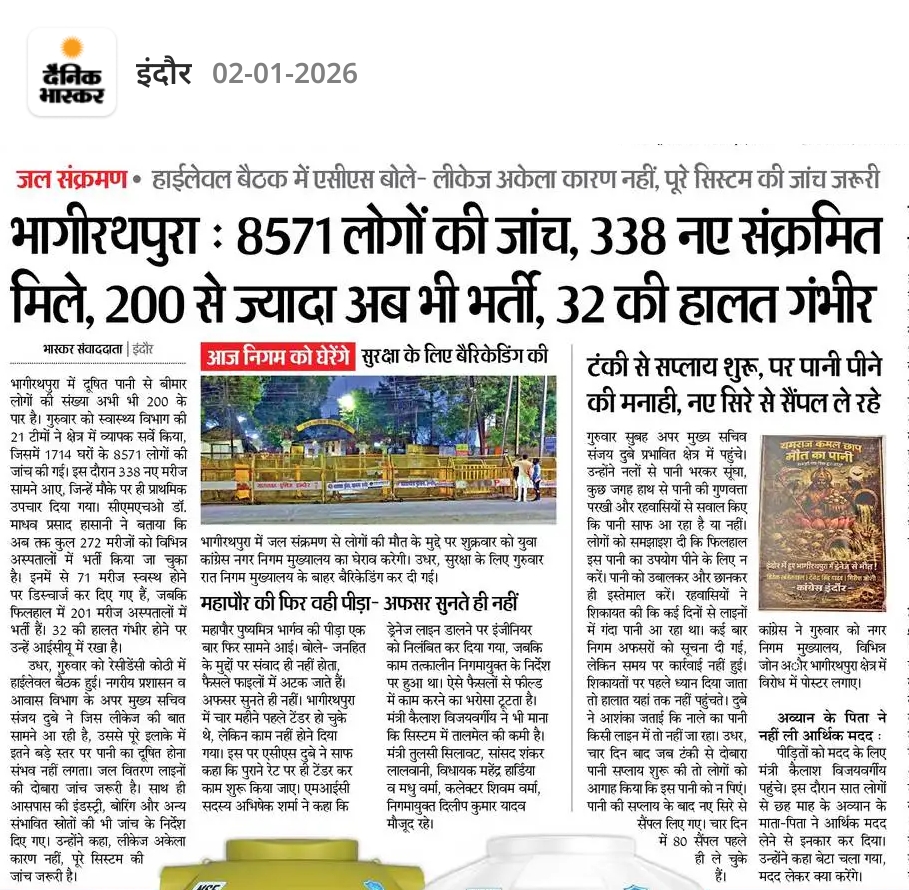इंदौर में गंदे पानी ने मचाया कोहराम शासन प्रशासन की हे घोर लापरवाही