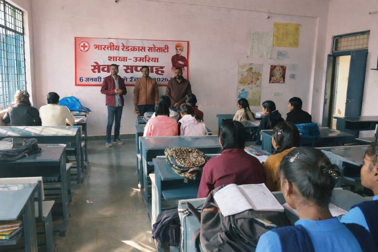 स्वामी विवेकानंद जी की जयंती “युवा दिवस” के अवसर पर भारतीय रेड क्रॉस सोसायटी, जिला शाखा उमरिया द्वारा 6 से 12 जनवरी 2026 तक जिलेभर में “सेवा सप्ताह” मनाया जा रहा है। इसी क्रम में 7 जनवरी को शासकीय हाई स्कूल सिलौड़ी में स्वामी विवेकानंद जी के जीवन दर्शन पर आधारित संवाद कार्यक्रम, वाद–विवाद एवं भाषण प्रतियोगिता का आयोजन किया गया। कार्यक्रम में विद्यार्थियों की सक्रिय सहभागिता देखने को मिली।
