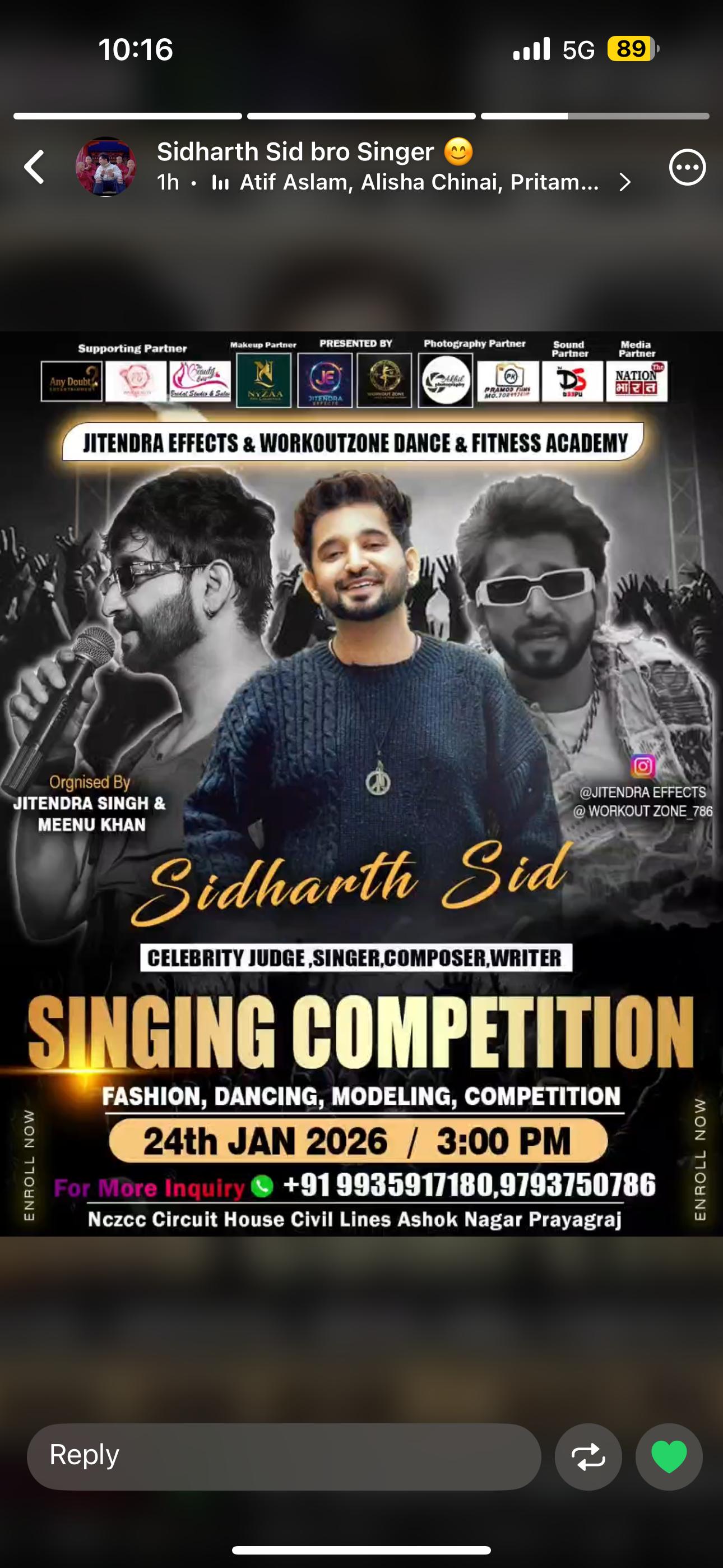 प्रयागराज मे होने जा रहा है भव्य "Singing Competition "- सेलिब्रेट जज होंगे "सिद्धार्थ सिड "