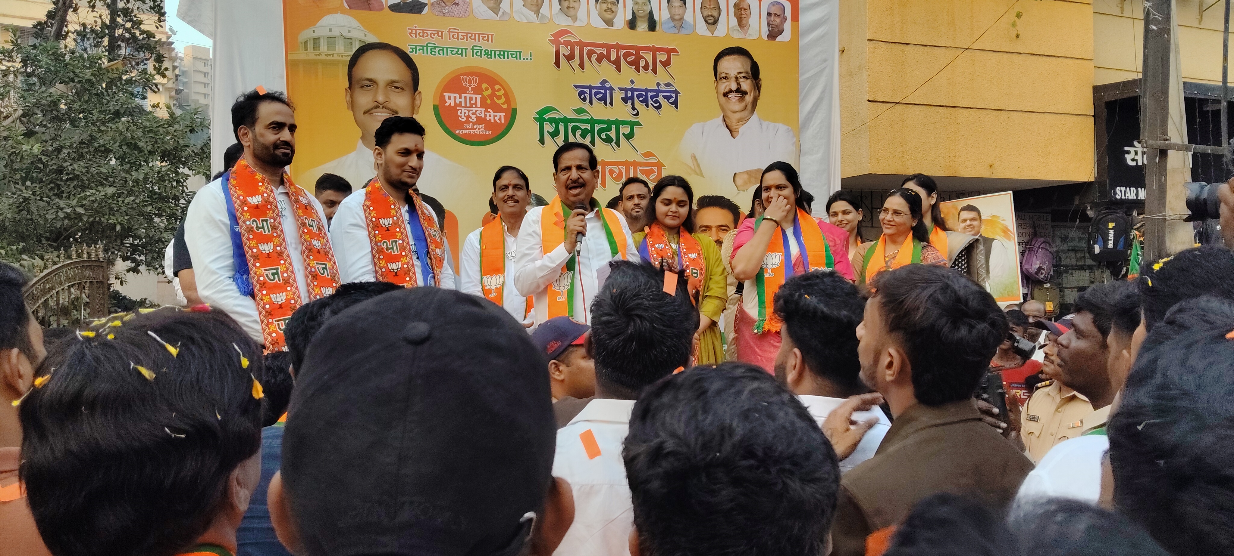 आज दिनांक 07/01/2026 नवी मुंबई शहर के कॉपर खैरने सेक्टर नंबर 12ई प्रभाग 13 के उम्मीदवार द्वारा आयोजित रैली में। म: श्री मुनावर फकीर मो पटेल के अगवाई में महाराष्ट्र के वन मंत्री म:श्री गणेश जी नायक साहेब नवी मुंबई शहर कॉपर खैरने में आयोजित कार्यक्रम में शामिल हुए