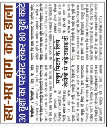 जनपद बिजनौर मे वन माफियाओ द्वारा बिना परमिट आम के हरे भरे फसली पेड़ काटने का सिलसिला जारी.