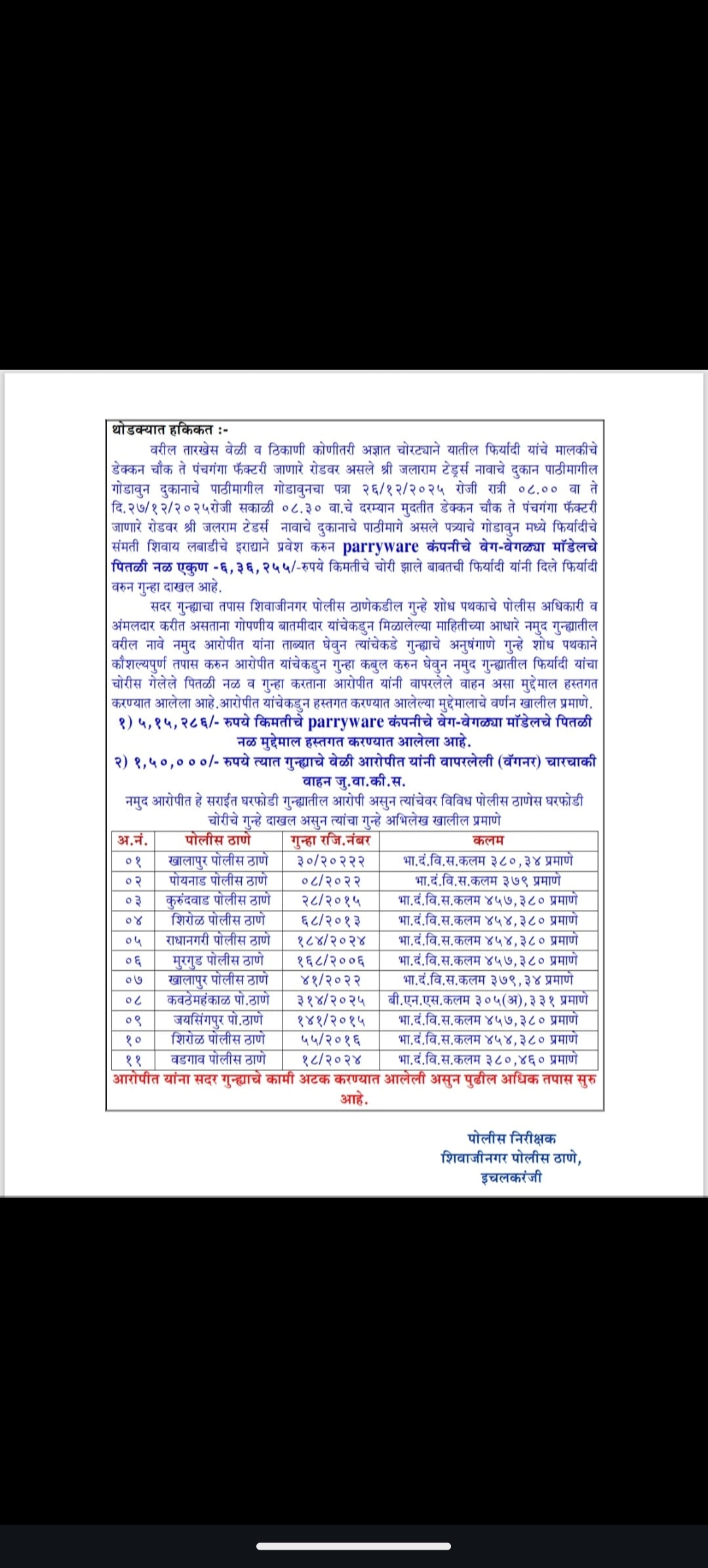 शिवाजी नगर पोलिस ठाण्याच्या हद्दीतील एक घरफोडी उघड...