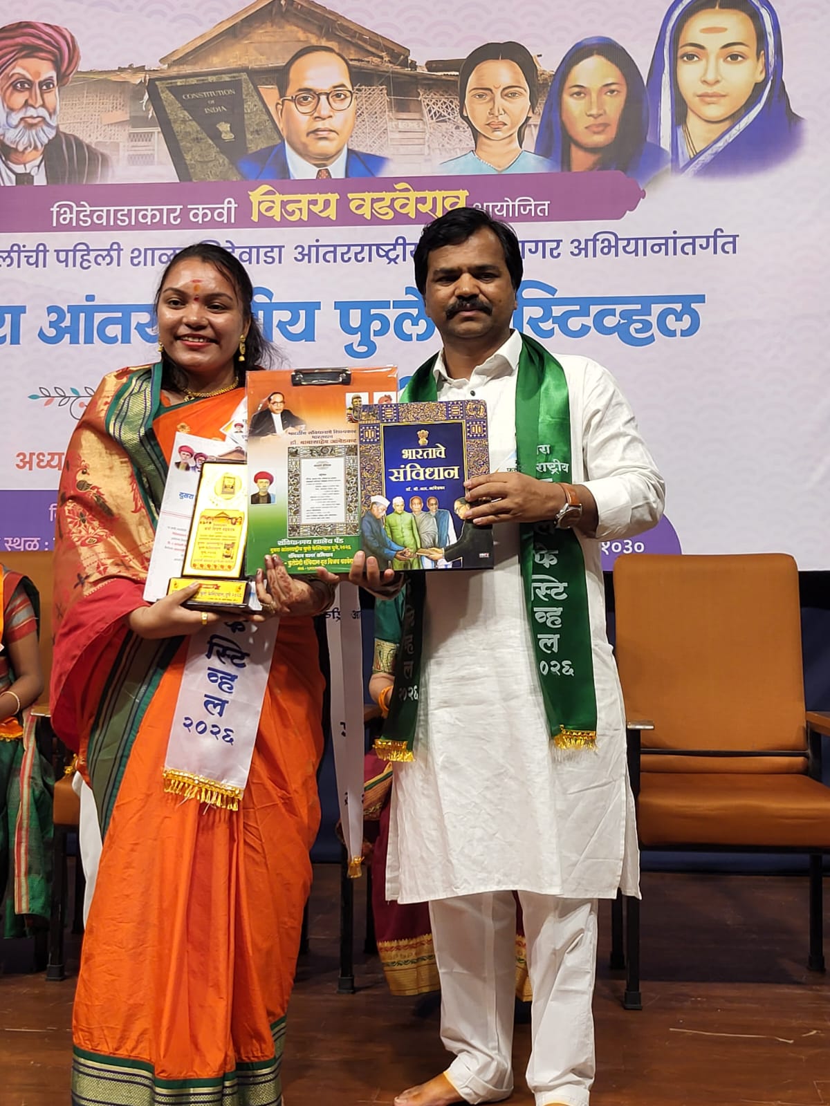 दुसरा आंतरराष्ट्रीय फुले फेस्टिवल पुणे 2026 साठी एरंडोल महाविद्यालयाच्या विद्यार्थिनीच्या स्वरचित कवितेचे सादरीकरण आणि निवड
