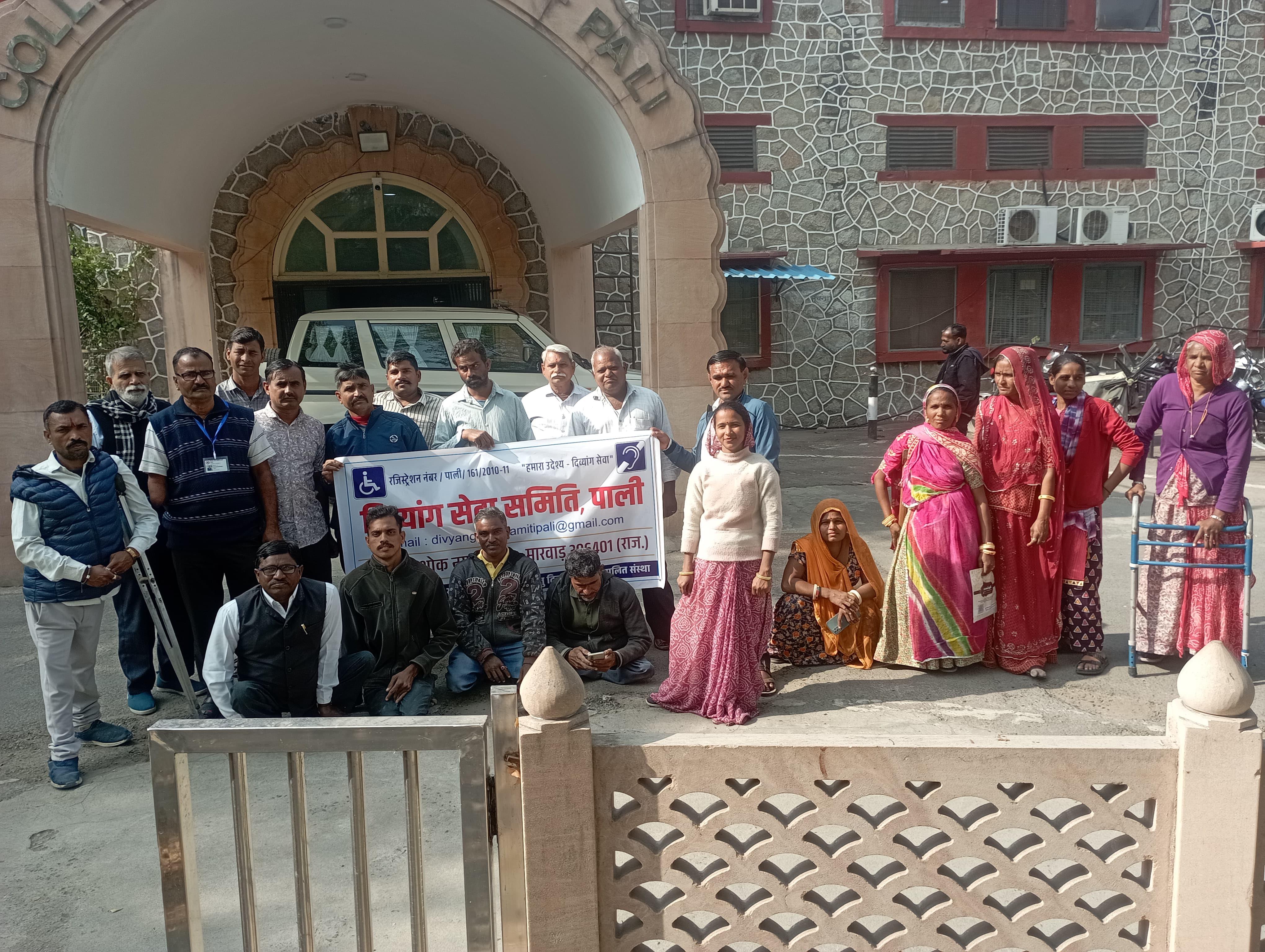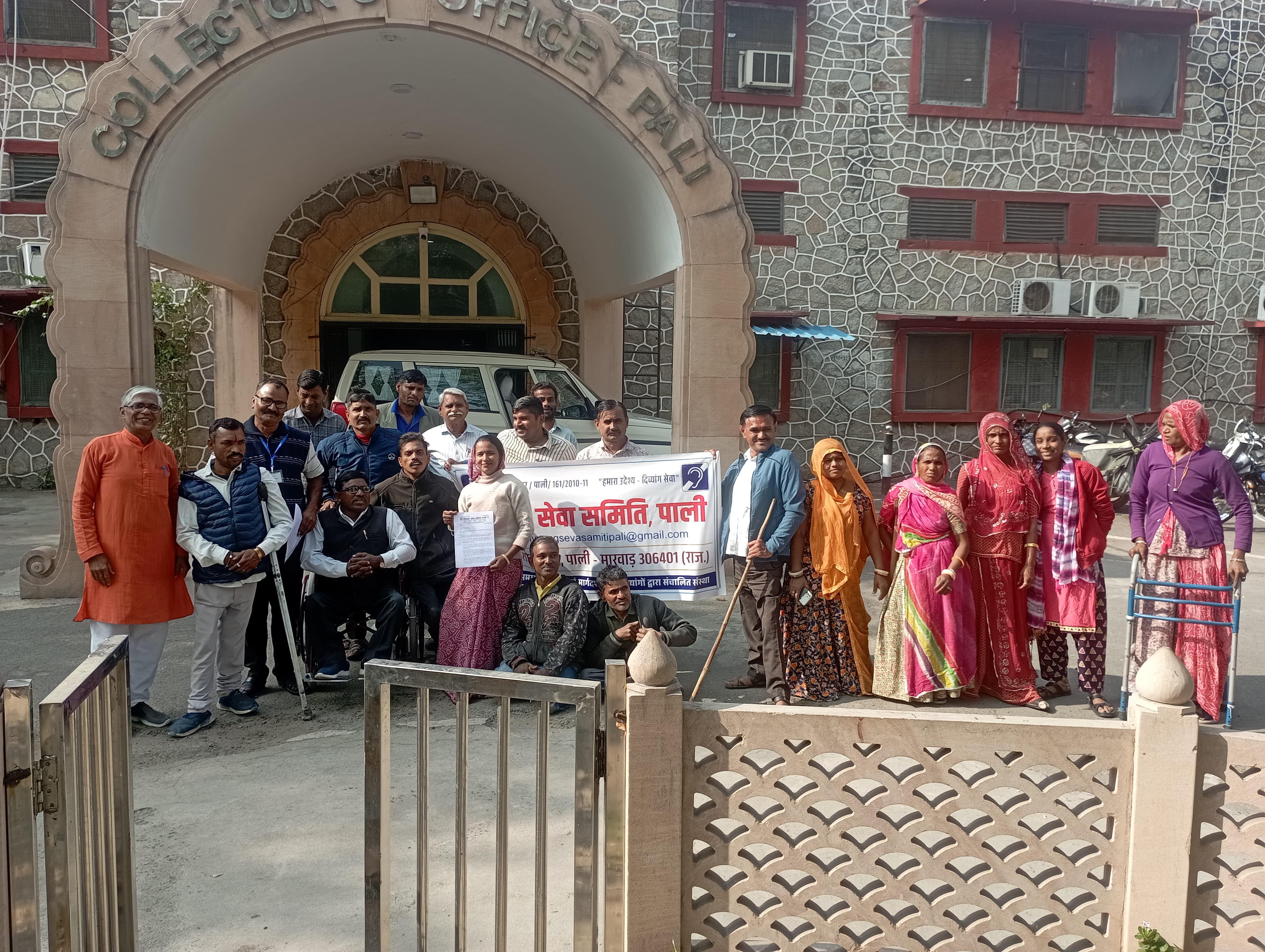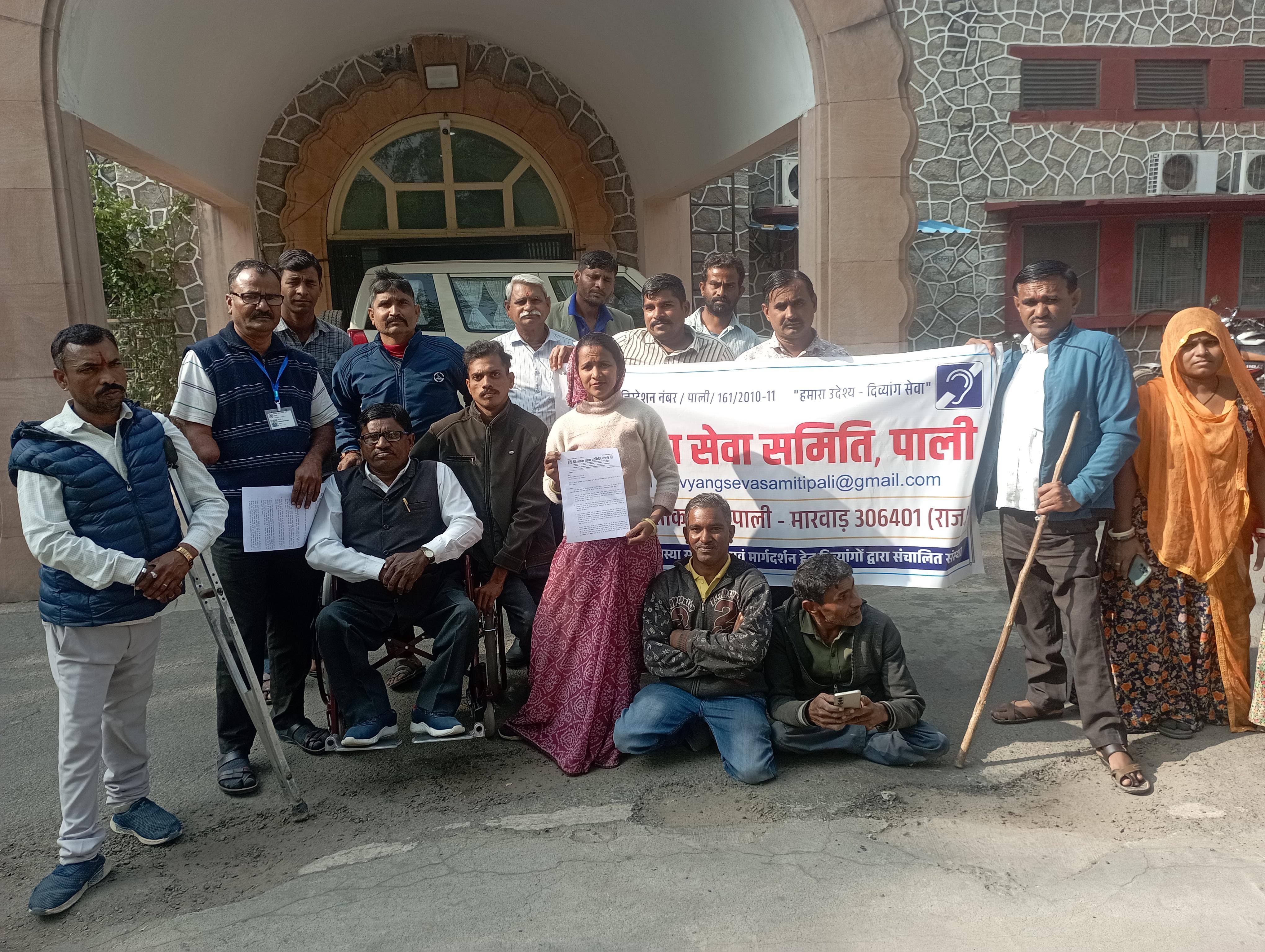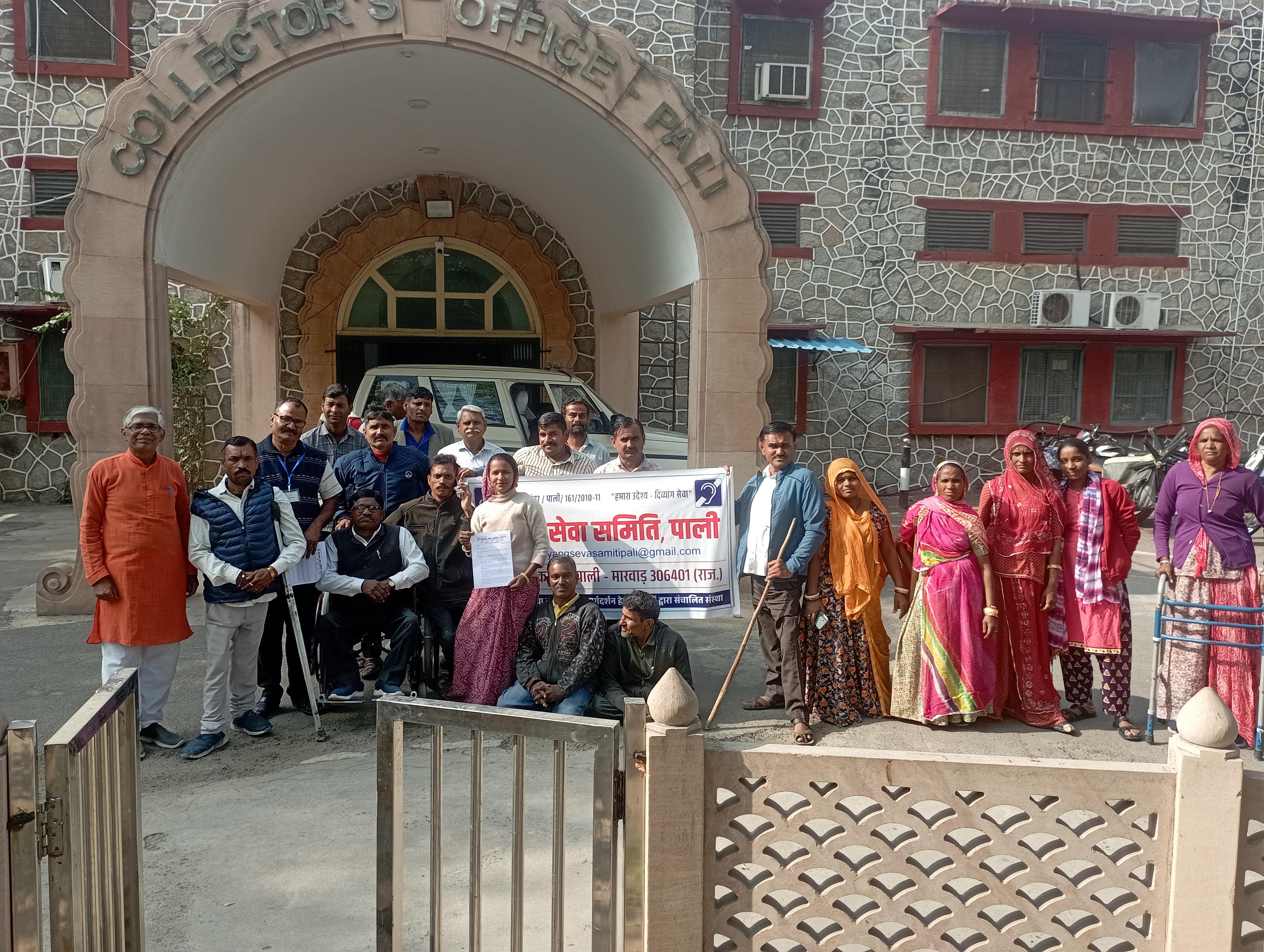 दिव्यांग सेवा समिति पाली के बेनर तले अपने अधिकारों के लिए दिव्यांग पहुंचे कलेक्टर के द्वार, दिया मुख्यमंत्री के नाम ज्ञापन।