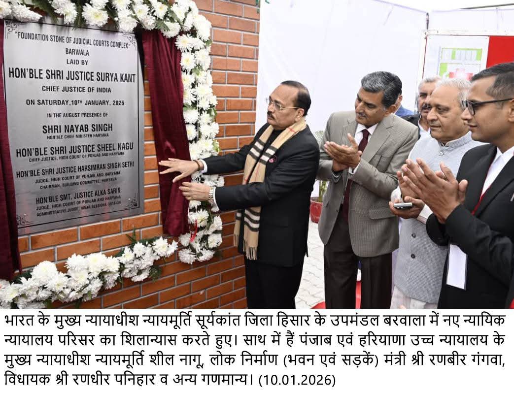 मुख्न्याय न्यायाधीश न्यायमूर्ति सूर्यकांत ने बरवाला में किया नई अदालत का शुभारंभ, कोर्ट कॉम्लेक्स की रखी आधारशिला।