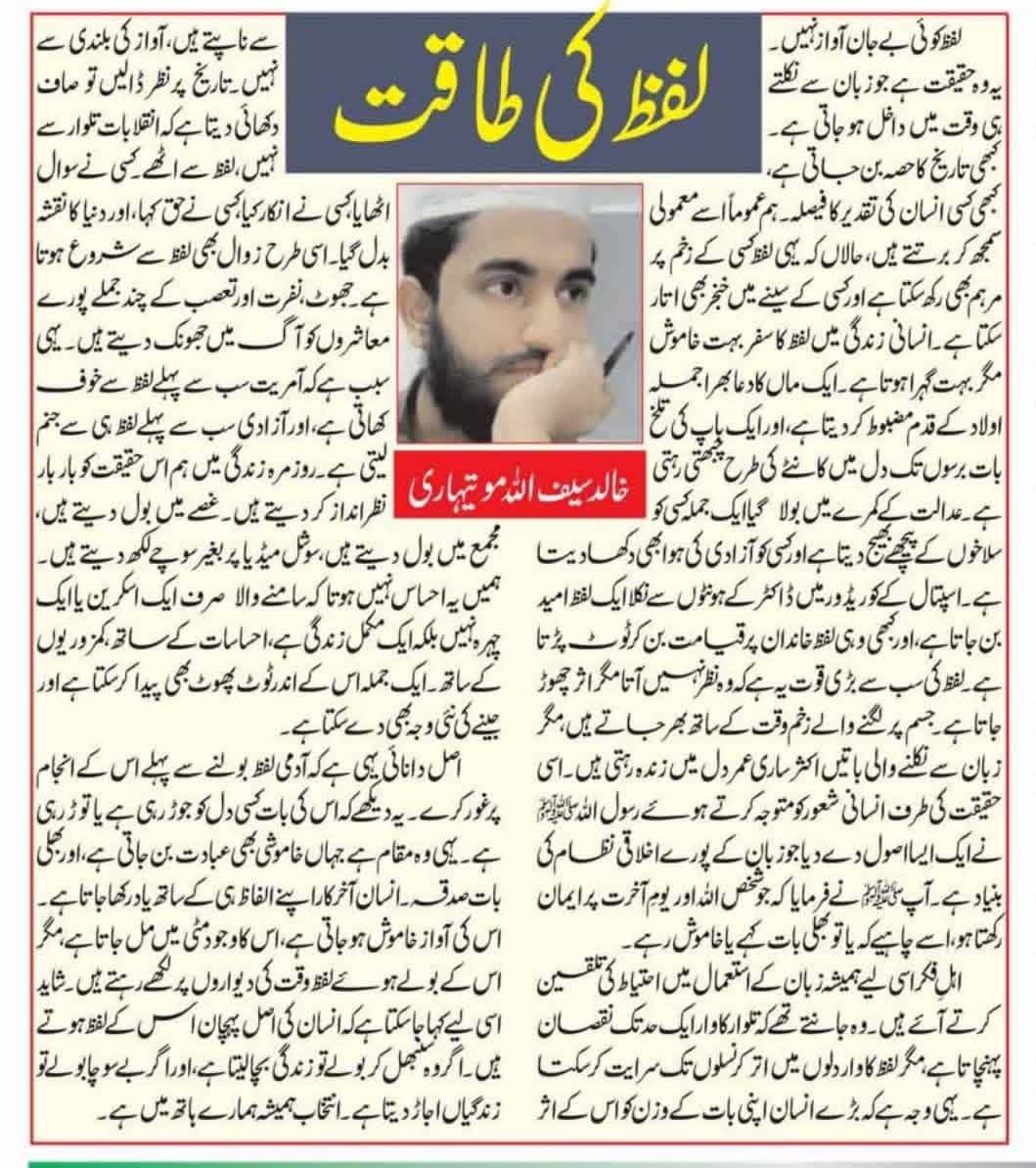 لفظ کوئی بے جان آواز نہیں۔ یہ وہ حقیقت ہے جو زبان سے نکلتے ہی وقت میں داخل ہو جاتی ہے۔ کبھی تاریخ کا حصہ بن جاتی ہے، کبھی کسی انسان کی تقدیر کا فیصلہ۔ ہم عموماً اسے معمولی سمجھ کر برتتے ہیں، حالاں کہ یہی لفظ کسی کے زخم پر مرہم بھی رکھ سکتا ہے اور کسی کے سینے میں خنجر بھی اتار سکتا ہے۔