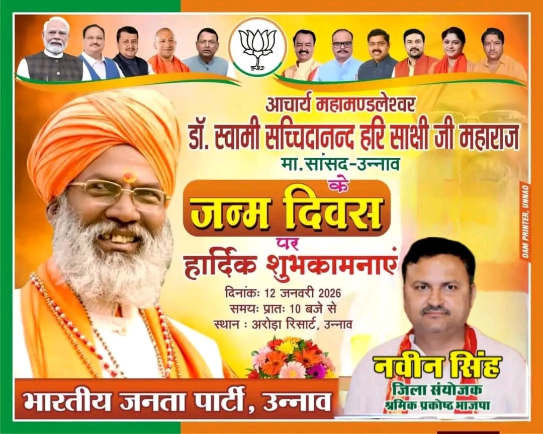आप सभी सम्मानित कार्यकर्ता बंधुओं से अनुरोध हैं कि 12 जनवरी को माननीय सांसद Drswami Sakshiji Maharaj जी के जन्म दिवस पर अरोड़ा रिसॉर्ट में उपस्थित होकर उक्त कार्यक्रम भव्यता प्रदान करें