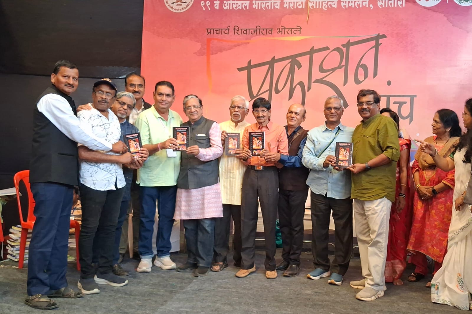 या सोहळ्याला चित्रपट कलावंत आणि साहित्य क्षेत्रातील मान्यवरांची उपस्थिती लाभली होती. व्यासपीठावर शिरीष चिटणीस, संगीतकार चंद्रमोहन हंगेकर, निर्माते पी. वाय. कोळी, वनराज कुमकर, प्रा.रवींद्र कोकरे, डॉ.संदीप श्रोत्री, रवीप्रकाश कुलकर्णी, नमिता कीर, निर्मोही फडके, मुकुंद फडके, डॉ. अनन्या कराळे, सुरेश गायकवाड, सिने कलावंत उल्हास आढाव आणि विशाल कराळे आदी मान्यवर उपस्थित होते. साहित्य संमेलनातील या आगळ्यावेगळ्या पुस्तकाची उपस्थित साहित्यप्रेमींमध्ये चर्चा रंगली होती.