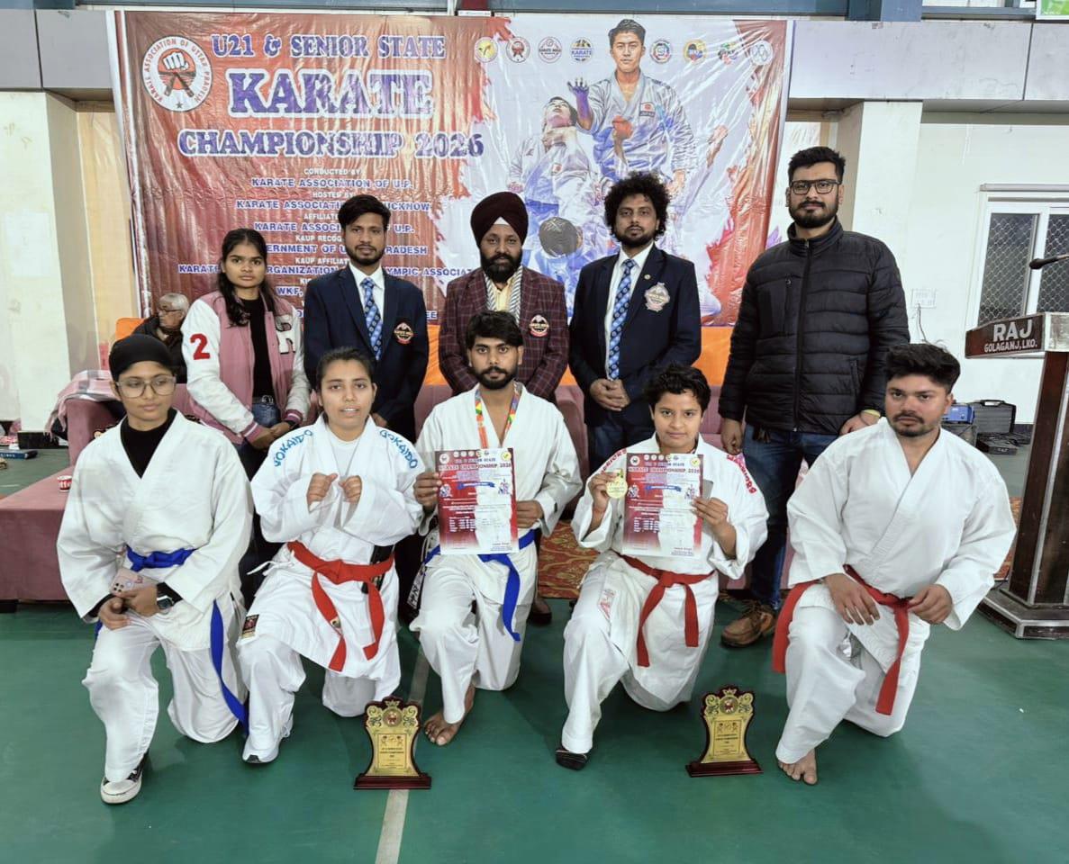 कराते एसोसिएशन ऑफ़ उत्तर प्रदेश के तत्ववधान में अंडर-21 एवं सीनियर राज्ये कराते प्रतियोगिता का आयोजन 11 जनवरी, 2026 को के.डी.सिंह बाबू स्टेडियम लखनऊ में आयोजित किया गया /- इसमें अलीगढ़ कराटे डू एसोसिएशन की खुशी शर्मा ने +68 वर्ग भार में स्वर्ण पदक हासिल कर नेशनल कराते प्रतियोगिता में अपना नाम दर्ज किया/-