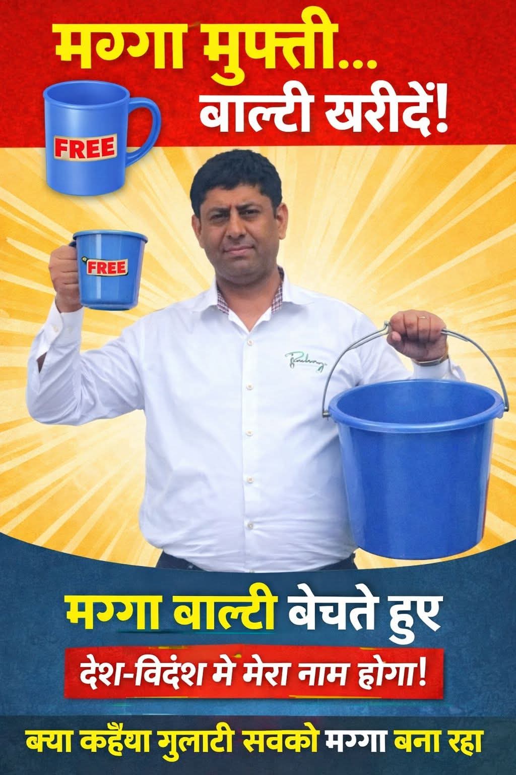 “जीजा जी सिर्फ बाल्टी बेच रहे हैं, और हमारी कंपनी बाल्टी के साथ मग्गा फ्री दे रही है। अब बताइए, क्या करेंगे—जीजा की दुकान से खरीदेंगे या हमारी कंपनी से?”
