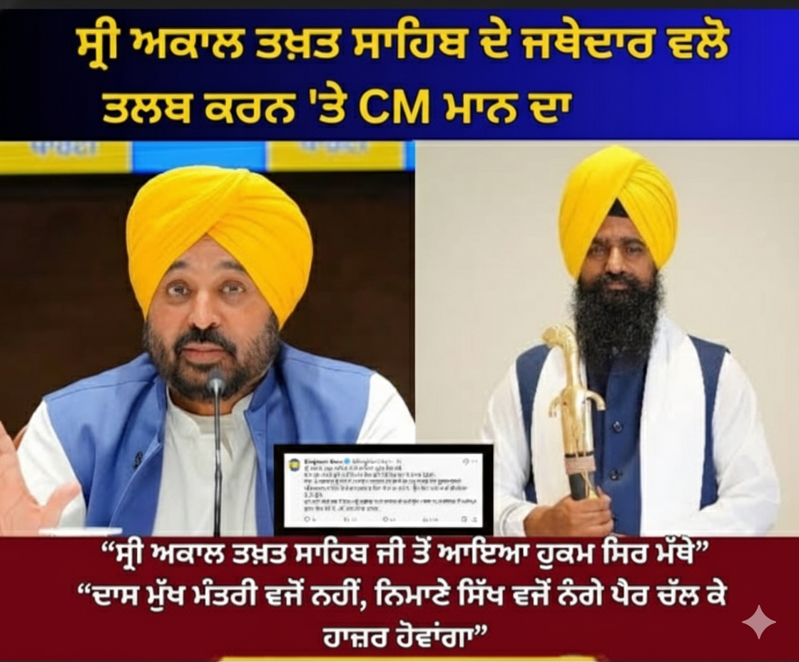 BREAKING NEWS: श्री अकाल तख्त साहिब का बड़ा आदेश! मुख्यमंत्री भगवंत मान की पेशी पर मचा घमासान
