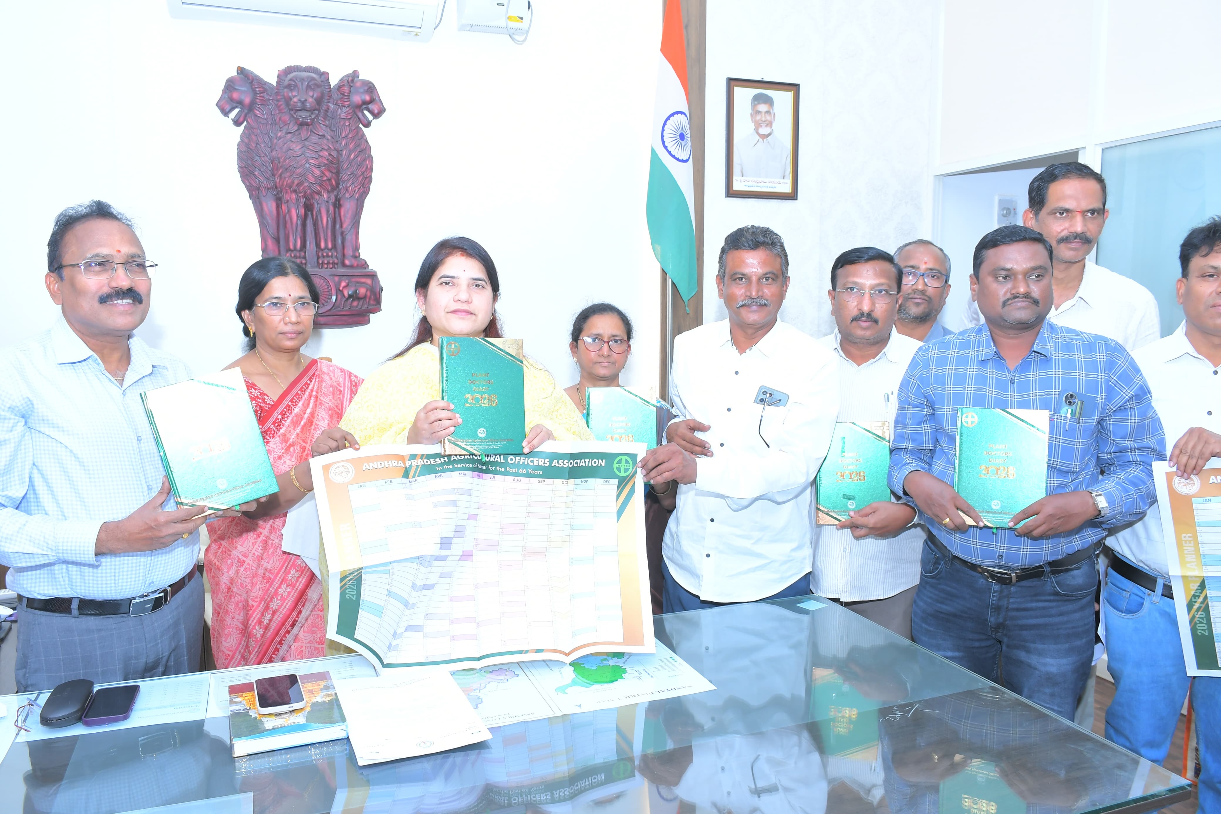 నంద్యాల (AIMA MEDIA): వ్యవసాయ శాఖ అధికారులు రైతుల సేవలో నిబద్ధతతో పనిచేసి వారిని ప్రగతి పథంలో ముందుకు నడిపించాలని జిల్లా కలెక్టర్ జి రాజకుమారి సూచించారు. మంగళవారం కలెక్టర్ ఛాంబర్ లో ఆంధ్రప్రదేశ్ వ్యవసాయ అధికారుల సంఘం ఆధ్వర్యంలో నిర్వహించిన డైరీ, క్యాలెండర్ ఆవిష్కరణ కార్యక్రమంలో కలెక్టర్ పాల్గొన్నారు.ఈ సందర్భంగా జిల్లా కలెక్టర్ జి. రాజకుమారి మాట్లాడుతూ రైతుల సేవలో వ్యవసాయ అధికారులు నిబద్దతతో పని చేయాలన్నారు. డైరీలో పొందుపరిచిన క్వాలిటీ కంట్రోల్ నిబంధనల ప్రకారం నాణ్యమైన విత్తనాలు, ఎరువులు, పురుగుమందులు రైతులకు అందేలా చర్యలు తీసుకోవాలని ఆదేశించారు. అలాగే అందరికీ సంక్రాంతి శుభాకాంక్షలు తెలియజేశారు. అనంతరం జిల్లా కలెక్టర్ ఎలుకల నివారణకు సంబంధించిన పాంప్లెట్లు, పోస్టర్లను విడుదల చేశారు. పంట విత్తనం నుంచి కోత వరకు ఎలుకల వల్ల నష్టం జరుగుతున్నందున రైతులు సామూహిక ఎలుకల నివారణ కార్యక్రమంలో పాల్గొని మెరుగైన దిగుబడులు, అధిక లాభాలు పొందాలని పిలుపునిచ్చారు. ఈ కార్యక్రమంలో జిల్లా వ్యవసాయ అధికారి నున్న వెంకటేశ్వర్లు, వ్యవసాయ అధికారులు మరియు ఏపీ వ్యవసాయ అధికారుల సంఘ ప్రతినిధులు పాల్గొన్నారు.