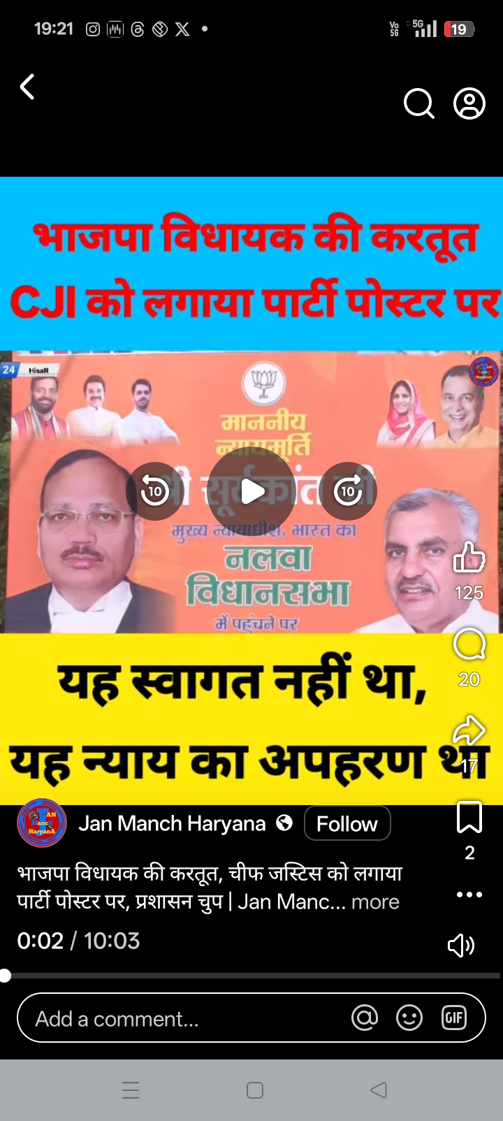 हरियाणा में भाजपा विधायक की एक गंभीर और संवैधानिक मर्यादाओं को तोड़ने वाली करतूत सामने आई है। भाजपा विधायक द्वारा देश के माननीय चीफ जस्टिस की तस्वीर को पार्टी के राजनीतिक पोस्टर में इस्तेमाल किए जाने का मामला उजागर हुआ है। इस घटना के बाद लोकतंत्र, न्यायपालिका की स्वतंत्रता और संविधान की गरिमा पर सवाल खड़े हो गए हैं।