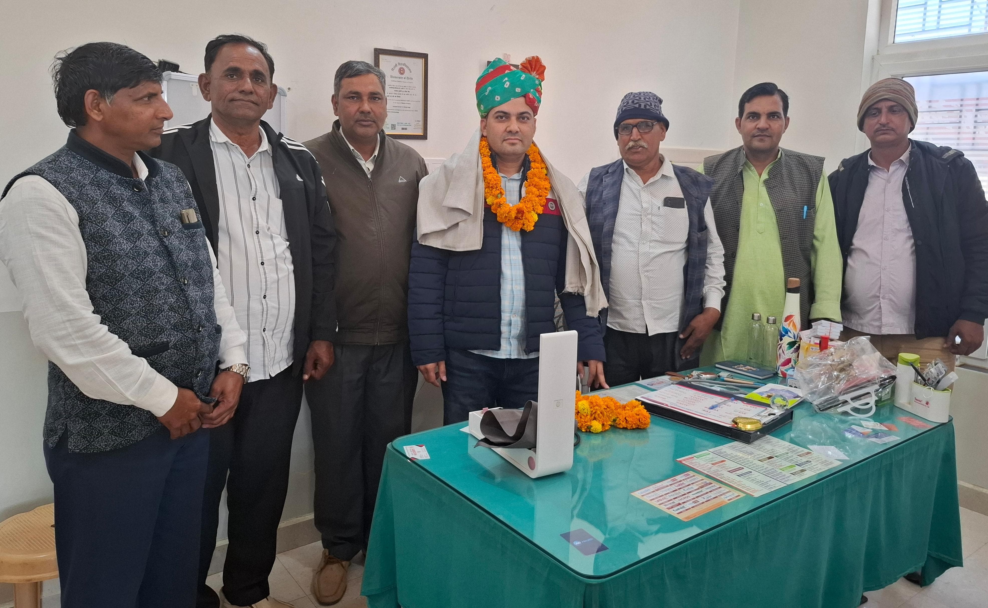तेजाजी मन्दिर में 51 हजार रुपये नकद व निर्माण सामग्री देने की घोषणा करने पर डॉ. राकेश रेप्सवाल का स्वागत किया