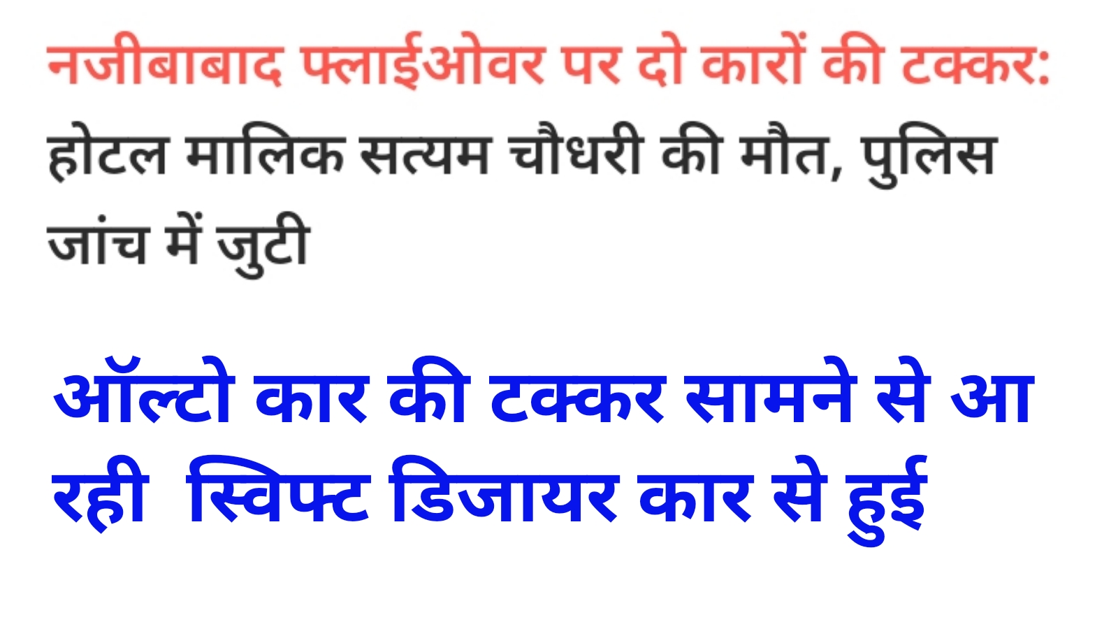 नजीबाबाद फ्लाईओवर पर दो कारों की टक्करः होटल मालिक सत्यम चौधरी की मौत, पुलिस जांच में जुटी