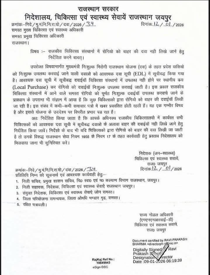 सरकारी डॉक्टर बाहर की दवाई लिखते है तो तुरंत कार्यवाही करें सरकारी आदेश जारी