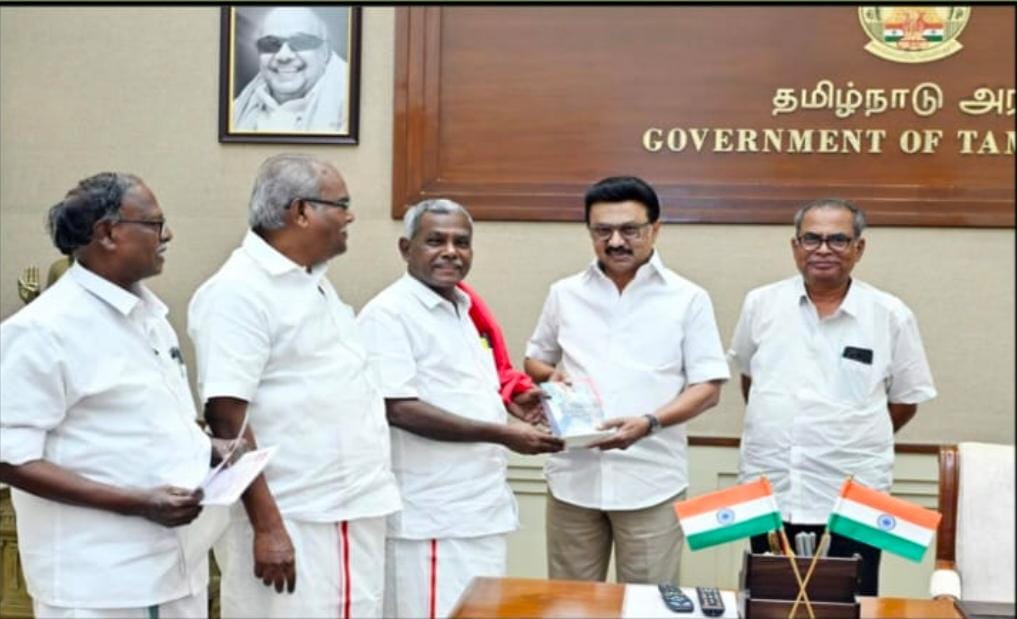 இன்றைய தினம் 13/01/2026 மார்க்சிஸ்ட் கம்யூனிஸ்ட் கட்சியின் மாநிலத் தலைவர் P.சண்முகம் தலைமையில் நிர்வாகத் தோழர்களுடன், முதல்வரை சந்தித்து அரசு ஊழியர்களுக்கு TAPS ஓய்வூதிய திட்டம் அறிவித்தது போல,அங்கன்வாடி சத்துணவு ஊழியர்களுக்கு காலமுறை ஊதியம், உயர்த்தப்பட்ட ஓய்வூதியம் உள்ளிட்ட பிரச்சினைகளை தீர்வு செய்ய வேண்டும் என கோரிக்கை மனு அளித்தனர்.
