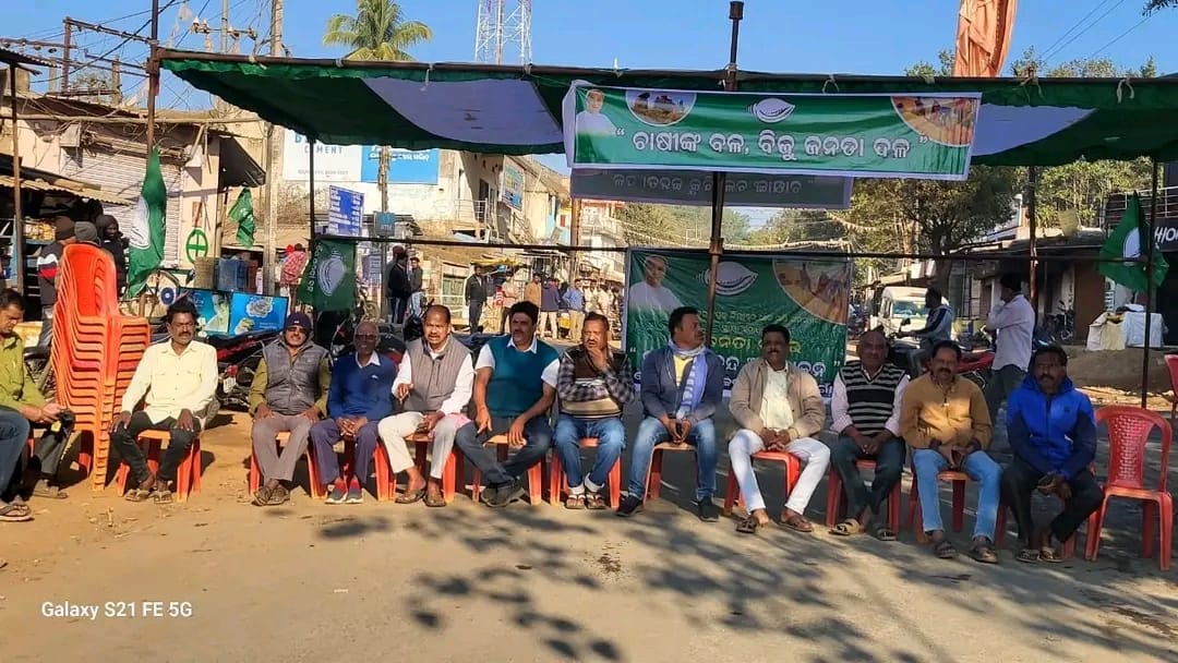 ଡାବୁଗାଁ ରେ ଧାନ ମଣ୍ଡି ର ସ୍ଥାୟୀ ସମାଧାନ ପାଇଁ ବିଜୁ ଜନତା ଦଳର ଚକ ଅଖ ବନ୍ଦ ଡାକରା ସଫଳ।