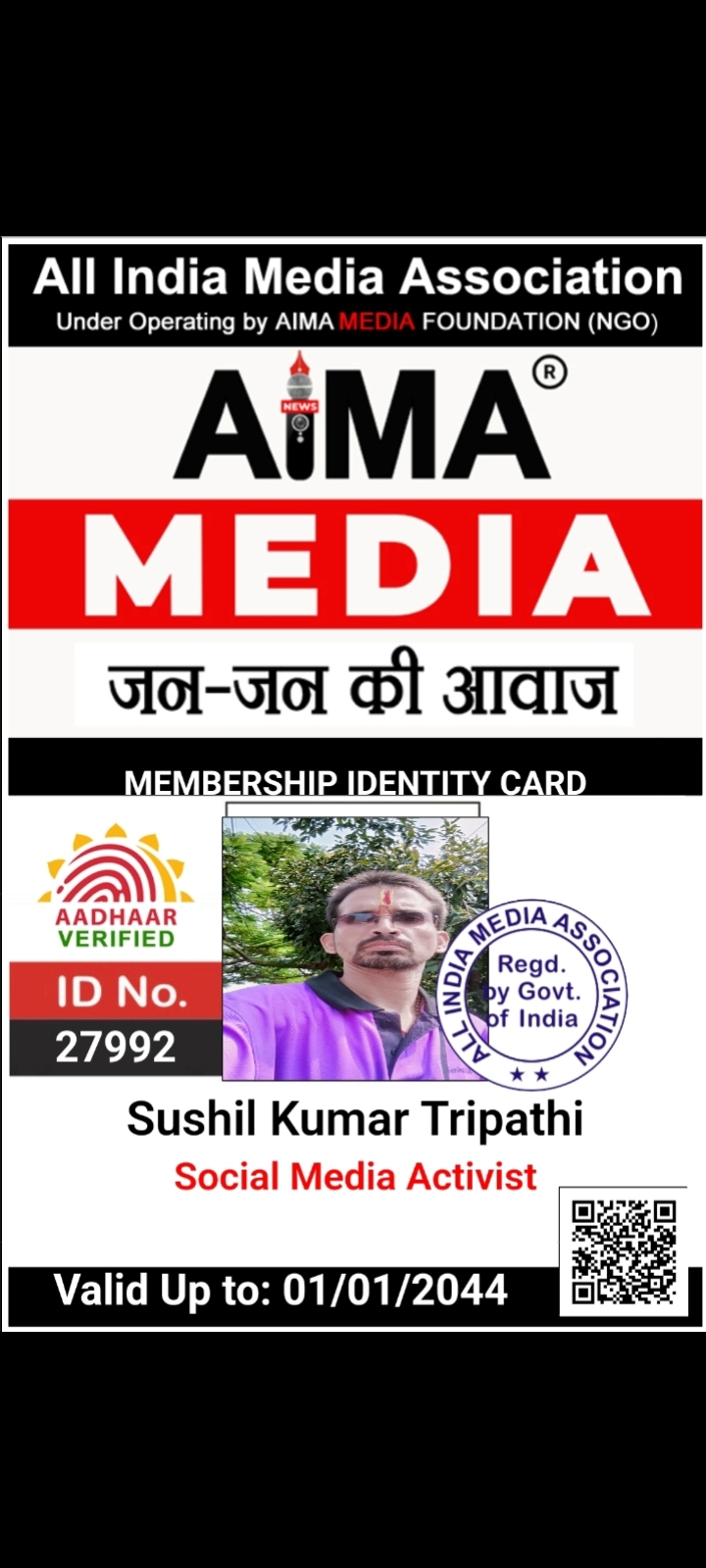 रिपोर्ट प्रस्तुत करते हुए आपके अपने सोशल मीडिया एक्टिविस्ट सुशील कुमार त्रिपाठी Aima Media एमा मीडिया जनजन की आवाज से।